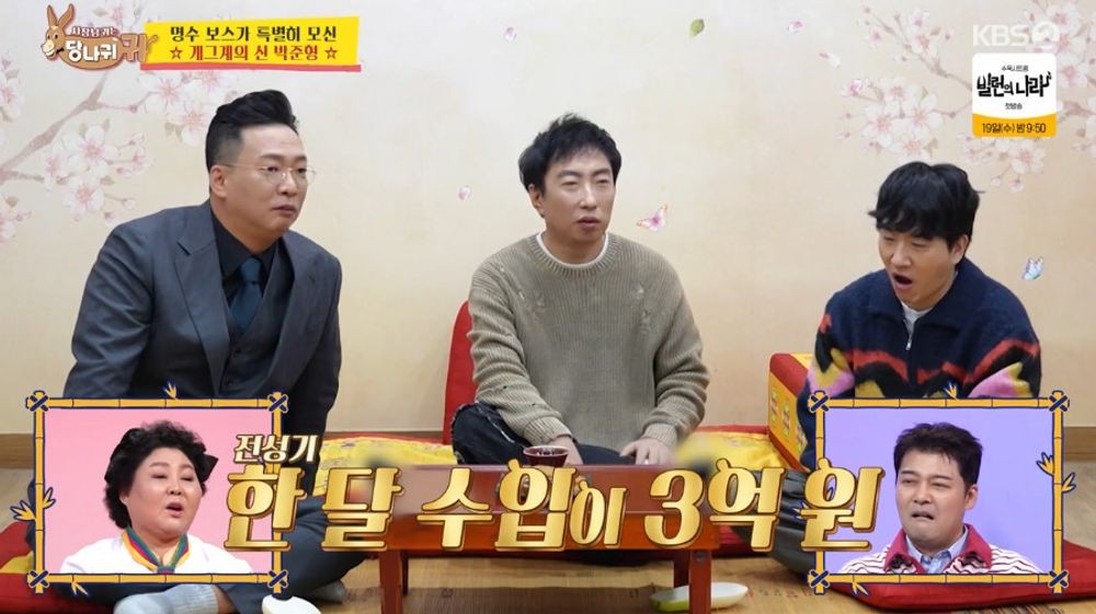 [TV리포트=이혜미기자]개그맨박준형이‘개그콘서트’로전성기를보내면서월3억원의수입을올렸다며관련사연을소개했다.16일KBS2TV‘사장님귀는당나귀귀’에선박명수의보스라이프가공개됐다.이날방송에선2000년대초반‘갈갈이삼형제’‘우비삼남매’‘골목대장마빡이’‘사랑의가족’등으로‘개그콘서트’의전성기를이끈박준형이깜짝게스트로함께했다.박준형은“당시엔행사때문에서울에서울산,울산에서광주,광주에서제주까지하루에비행기를여러번타기도했다”면서“5월1일에나가서7일에집에들어온적도있다”라고입을뗐다.이어“그때‘개그콘서트’가정말잘됐는데MBC‘개그야’와SBS‘웃찾사’도잘됐다.방송3사개그프로그램들이전부20%를넘겼고‘개그콘서트’는40%를넘겼다”며당시의인기를회상했다.이에함께출연한신윤승이“수입이어마어마했다던데”라고넌지시묻자박준형은“한달에한3억원을벌었다”라고답하는것으로놀라움을자아냈다.당시개그맨들의인기는MBC를중심으로활동하던박명수도체감했던것.박명수는“그때는개그맨이웬만한배우보다인기가많았다”며아련해했다.뿐만아니라KBS공채개그맨시험의특별심사위원으로나서게된그는“개그프로그램의부흥을이끌수있는친구를뽑고싶다”며포부를전했다.이혜미기자[email protected]/사진=‘사장님귀는당나귀귀’방송화면캡처Copyright©TV리포트.무단전재및재배포금지