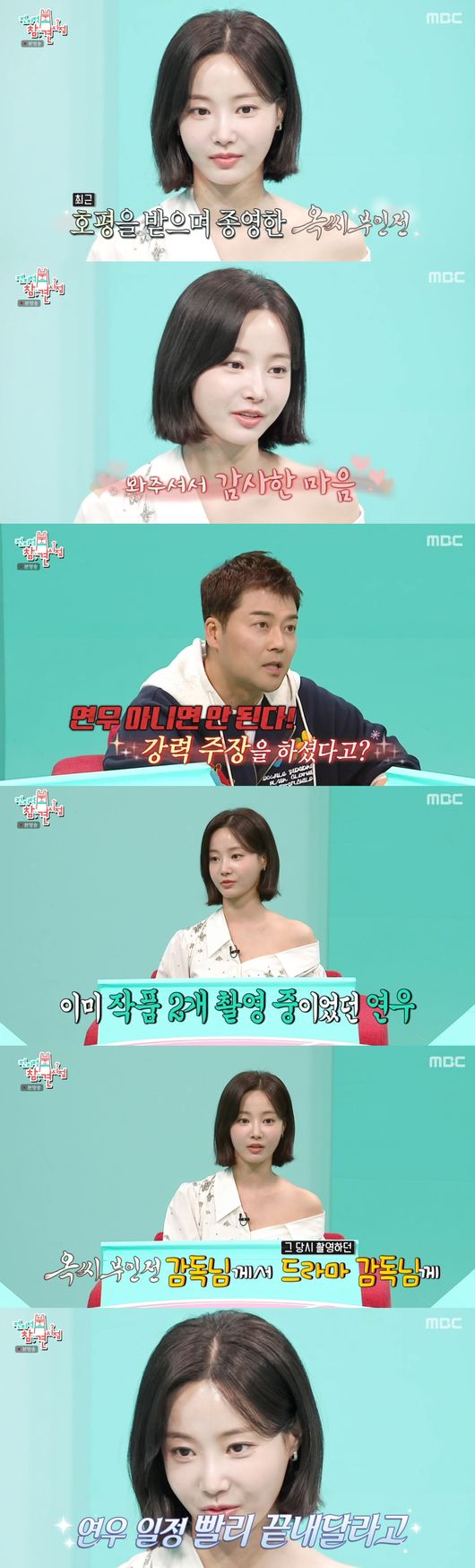 '전참시'방송[OSEN=최지연기자]배우연우가'옥씨부인전'캐스팅비하인드를알렸다.1일방송된MBC예능'전지적참견시점'(이하'전참시')332회에서는참견인으로연우,신현준,정준호가출연해눈길을끌었다.이날전현무는"연우씨'옥씨부인전'대박이났다.연기를너무잘했다"며"감독님이차미령역할은연우아니면안된다고협박까지했다더라"고너스레를떨었다.연우는"캐스팅제안이들어왔을때작품2개를이미촬영중이었다.일이많아서어떡하지했는데그때촬영중이던드라마감독님께'옥씨부인전'감독님이연락을해서빨리끝내달라고했다더라."고알렸다.이에다른패널들이"원래아시던분이냐"고질문,연우는"두분이선후배사이시다.캐스팅한이유를잘못들었는데그냥차미령역할에연우가딱어울리는것같다고하셨다더라"고말해공감을자아냈다.한편신현준은정준호를보며"연기자로서정말행운이다.정준호도그런경우가없는데"라며연우를칭찬하는듯정준호를놀려웃음을더했다.[사진]'전참시'방송[email protected]©OSEN.무단전재및재배포금지.