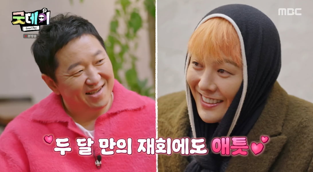 [텐아시아=조나연기자]지드래곤이오랜만에본정형돈에게반가운인사를건넸다.9일방송된MBC예능'굿데이'에서는지드래곤이정형돈과데프콘을만나는장면이그려졌다.이날방송에서정형돈은"이만큼일했으면됐지,30년넘게일했는데.아니다올해가딱30년차다.95년부터일했다"고말했고,이에데프콘은"이제좀쉬어라"고했다.그러자정형돈은"이미쉬고있다"고대답했다.이에데프콘이"내가아무리지금너보다잘나가도성공은네가한거다.난네가제일부럽다"고칭찬하자정형돈은"카메라돌고있나.너무방송톤이다"고너스레를떨었다.그럼에도데프콘은"너가성공한삶이다.착한와이프에예쁜두딸에,일이야있다가도없고없다가도있는거다"고했다.이에정형돈이"요즘계속없어.네가다하잖아"고얘기했다.그때지드래곤이모습을드러냈고,정형돈을뒤에서안으며반가워했다.지드래곤은"오늘왜이렇게제옷아니냐형"며정형돈의몰라보게달라진모습에놀라워했다.또한자신의양말과정형돈의색깔이똑같아반가워했다.정형돈은"너이런거안받아줄거다"고새침하게얘기했고,지드래곤은"형요즘예뻐졌다는소문이자자하다.오늘지금까지형모습중에제일연예인같다"고칭찬했다.데프콘도"정형돈이살을많이뺐다"며거들었다.한편정형돈은4개월여간의다이어트로무려21kg감량해화제를모았다.MBC'굿데이'는매주일요일오후9시10분방송된다.조나연텐아시아기자[email protected]©텐아시아.무단전재및재배포금지.