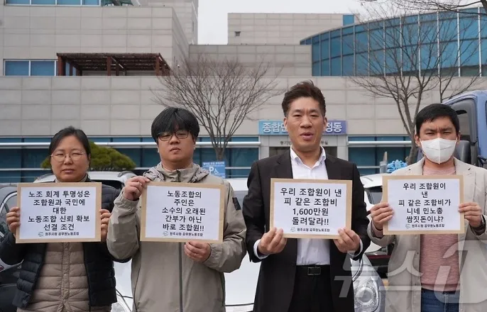 업무상배임혐의벌금형원주시공무원손해배상피소원공노"임금문제외다른손해도"…공무원측"수긍못해"강원원주시소속공무원이민주노총활동가에대한인건비지급과관련해업무상배임혐의로재판에넘겨져지난12일춘천지법원주지원에서벌금형을선고받은가운데,이사건혐의를주장해왔던원주시청공무원노동조합이같은날원주지원법정동앞에서해당공무원에내려진유죄판결에대한입장을밝히고있다.(원주시청공무원노동조합제공.재판매및DB금지)2025.3.13/뉴스1(원주=뉴스1)신관호기자=강원원주시공무원이수년전노조활동중민주노총활동가에게조합비로적절치않게상근직원형식의임금을준혐의로벌금형을선고받은가운데,원주시노조가그공무원과활동가를상대로손해배상청구소송도벌이는등법정공방은계속되고있다.특히노조는당시조합비가활동가의임금뿐만아니라,타지역투쟁기금과축제후원금으로도무단지출됐다고주장했는데,그공무원과활동가측은수긍할수없다며맞서고있다.13일뉴스1취재를종합하면,춘천지법원주지원형사2단독박현진부장판사는전날업무상배임혐의로기소된A씨(50대)에게벌금290만원을선고했다.박부장판사는"노조에손해를가한업무상배임행위로정당화할수없고초범인점등을고려해형을정했다"고밝혔다.민주노총전국공무원노동조합의원주시지부장으로재직했던A씨는2018년5~12월쯤노조상근직원으로근무하지않았던민주노총활동가B씨(50대)에게상근직원처럼급여를주는등당시노조에1600만원상당의손해를입힌혐의로기소됐다.A씨측은'B씨채용에절차적규정문제는인정하나실제필요한인력을채용했고그에따른비용을준것'이라며혐의를부인했으나,재판부는A씨가B씨를상근직원으로근무시킬의사가없는데고정급여를주려고형식상상근직원으로채용했다고보는등유죄로판단했다.앞선결심에서A씨에게징역6개월을구형했던검찰은이번재판부의벌금선고에대한항소를검토중이다.ⓒNews1DB이사건은민사법정에서도다뤄진다.춘천지법원주지원민사4단독신상렬부장판사(지원장)는원주시청공무원노동조합이A씨와B씨를상대로낸손해배상청구에대한변론기일을오는20일열예정이다.앞서이사건은과거전공노원주시지부로활동했었던원주시청공무원노동조합(원공노)이A씨를2022년경찰에고소하며알려졌다.이후A씨의업무상배임혐의형사재판과맞물려원공노의손해배상청구소송도제기된것이다.원공노는A‧B씨에게상근직원인건비1600만원과이에대한수년간의연5%대가산금등의손해배상을받겠다고밝혔다.또원공노는A씨가B씨를돕기위해여러명목의타지역투쟁기금과축제후원금등에조합비340만여원을무단지출했다고주장하며그금액등을돌려받겠다는입장이다.반면A‧B씨측변호인은원공노의주장을받아들이수없다고밝혔다[email protected]©뉴스1.Allrightsreserved.무단전재및재배포,AI학습이용금지.