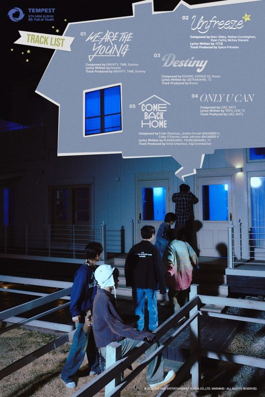 [OSEN=선미경기자]컴백을앞둔그룹템페스트(TEMPEST)의새타이틀곡이베일을벗었다.템페스트는14일0시,공식SNS를통해여섯번째미니앨범'RE:FullofYouth(리:풀오브유스)'의트랙리스트이미지를공개했다.이번앨범에는'WEARETHEYOUNG(위아더영)'과'Unfreeze(언프리즈)','Destiny(데스티니)','ONLYUCAN(온리유캔)','COMEBACKHOME(컴백홈)'까지총5곡이수록됐다.이중타이틀곡은'Unfreeze'로,겨우내차갑게얼어붙어있던마음을한순간에녹이는,봄같은사랑을담아냈다.사랑에빠져어쩔줄몰라하는순수한마음을묘사한가사와청량하고파워풀한멜로디가어우러져누구든사랑에빠질수밖에없는완벽한트랙을완성했다.그동안'Dragon(飛上)(드래곤(비상))','난장(Dangerous)','LIGHTHOUSE(라이트하우스)'등템페스트의다양한타이틀곡작사에참여하며뛰어난역량을보여준LEW는이번에도수록곡'ONLYUCAN'작사에이름을올렸다.LEW는팬들을향한멤버들의진정성가득한마음을담아팬덤'iE(아이)'를위한따뜻한곡을완성했다.또템페스트는14일오후6시에글로벌숏폼동영상플랫폼틱톡(TikTok)을통해'COMEBACKHOME'을선공개한다.2000년대초반의감성을품은트렌디하고감각적인무드가특징인곡을스페셜클립으로선보이며컴백기대감을고조시킬예정이다.지난해3월,그룹의아이덴티티'폭풍'을주제로한폭풍시리즈의마지막챕터인다섯번째미니앨범'TEMPESTVoyage(템페스트보야지)'이후1년만에가요계에돌아오는템페스트는이번신보를통해'청춘'에대해이야기하며새로운모습을보여줄것을예고했다.특히앞서공개한콘셉트포토에서색다른비주얼을선보이며팬들의뜨거운반응을모은템페스트는청춘의자유와사랑,그리고꿈에대한확신을담은앨범을통해한층더성장한음악적역량을선보이며활약할것으로기대를모으고있다.템페스트의여섯번째미니앨범'RE:FullofYouth'는오는31일오후6시에각종음원사이트를통해발매된다./[email protected][사진]소속사제공.Copyright©OSEN.무단전재및재배포금지.