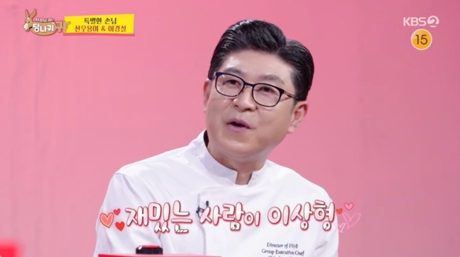 [OSEN=선미경기자]‘사당귀’신종철총주방장이20년차‘돌싱’이라고고백했다.9일오후에방송된KBS2TV예능프로그램‘사장님귀는당나귀귀’에서는신종철총주방장의사생활이공개됐다.절친한지인선우용여와이경실의등장으로사생활이강제공개된것.‘뷔페의신’신종철총주방장은자신을알아보는손님들과사진을찍으면서하루를시작했다.김민우셰프는“한마디로스타병에걸리신것같다.뷔페음식을챙기는것보다손님들과인사가우선인것같다.방송이총주방님을망친것같다”라고말했다.이에스튜디오에서신종철은“스타는아니고뜨고있는것같다”라고말했고,김숙은“그게스타병이라고하는거다”라고지적해웃음을줬다.이후신종철은중요한손님이온다며준비에나섰다.후배들에게신경써서셋팅을부탁했다.신종철이맞은손님은배우선우용여와개그우먼이경실이었다.신종철은“선우용여어머니와이경실누님은제가인정하는뷔페전문가시다.제가있는곳은어디든오셔서드셔주신다.정말뷔페맛을잘아신다.벌써10년된사이고,이분들이픽하신메뉴는시그니처메뉴가된다”라고말했다.신종철은두사람과의인연에대해서“제요리가맛있다고하셔서어머니를모시는마음으로해드렸다.어느순간아들과어머니사이가됐다”라고설명했다.특히선우용여는신종철에게손주들을보여주면서자랑하는가하면,“그래너도장가가겠다”라고사생활을언급해눈길을끌었다.신종철은“사실20년정도된돌싱이고,누님들이나어머님은저만보면‘결혼해라’고한다”라고밝혔다.선우용여는“여자만구해와라.내가여자는게얘장가가는거다.너무여우같으면피곤하다.장가를보내주고싶었다.몇명소개해줬는데안되더라고”라고말하면서속상해했다.이에스튜디오에서는신종철의이상형조사에나섰다.신종철은“예전에는유호정씨스타일을좋아했는데,요즘은조여정씨같이귀여운스타일을좋아한다.제가진지하다보니까재미있는사람이이상형”이라고말하면서공개구혼에나서기도했다.이순실은노래오디션에서혹평을들은후거래처직원들을불러북한의응원법을알려주면서자신을응원하도록요구했다.주말에거래처사람들을부른이순실은막무가내로박수를알려주고,호응하도록시키기도했다.스튜디오에서김숙은“너무과장된거아니냐.거래처끊기는거아니냐”라고지적했다.이에이순실은“사람들이다좋다.오라면오고해달라고하면해준다”라고해명하려고했지만,전현무는“하청업체”라면서이순실의행동을지적했다.스튜디오에서는이순실의노래욕심을두고여러가지의견이이어졌다.MC들은“아직도노래를포기못하겠냐”라면서욕심을버리라고조언했고,박명수는“차라리오프닝은괜찮다”라면서이순실편에서는듯했다.이에전현무는“박명수콘서트오프닝에서라”라고제안했고,박명수는“웃음꽃필요없다”라면서선을그렀다.이어통일메아리악단공연을위해출연자들이이순실을찾았다.이들중에는탈북음악인박성진도있었다.박성진은탈북이유를묻자“지인형결혼식에서간부들이술을마시고썩은노래를불러보라고해서불렀는데,사실제목을모르고불렀다.주병선의‘칠갑산’이었다.그노래를불렀는데,보위사령부에40일이상감금됐다”라고말했다.박성진은“1평방미터감옥이란말들어봤죠?거기들어가면허리를못핀다.40일정도되면복숭아뼈가썩어문드러지기시작한다.거기서사형선고받았다.조사실로갔는데다시는어디가서연변노래부르지말라고했다”라면서,“평양에서황해남도태탄으로보내졌다.한국과거리가가까워서삐라가정말많다.그때내가안거다.내가배웠던게거짓말이네.그게탈북이유가됐다”라고밝혔다.정지선셰프는아픈직원김희원의집을약속없이방문했다.김희원은정지선의등장에당황했고,특히정지선은집의청소상태나냉장고와주방의위생상태를지적해MC들의야유를받기도했다.정지선이김희원의집에온이유는음식을해주기위해서다.정지선은아픈직원을챙긴다면서곱창곡수를만들어주려고했고,요리를하면서계속해서김희원에게재료와도구를요구했다.결국아픈김희원은쉬지못했고,정지선이중식요리의특징인‘불쇼’까지하자MC들의지적을받기도했다.김희원이곱창국수를맛있게먹자만족한정지선은본론에들어갔다.정지선은김희원에게자신에게숨긴것이없냐고추긍했다.답을못하자정지선은김희원에게서바이벌프로그램에나가는것을왜숨겼냐고물었다.이에김희원은박진모셰프도나간다고말했고,정지선은제자들이자신에게‘흑백요리사2’지원사실을숨긴것을섭섭하게생각했다.결국정지선은김희원과함께박진모의가게를찾았다.정지선은지원서와영상을살펴보면서피드백을줬고,두사람의요리대결을제안했다.승리한사람만자신의이름을쓸수있다는것.정지선은완성된요리를맛보면서두제자에게조언을아끼지않았고,직접요리시범을보여주기도했다.그러면서두사람모두에게자신의이름을쓸수없다고냉정하게말했다./[email protected][사진]KBS2TV방송화면캡처.Copyright©OSEN.무단전재및재배포금지.
