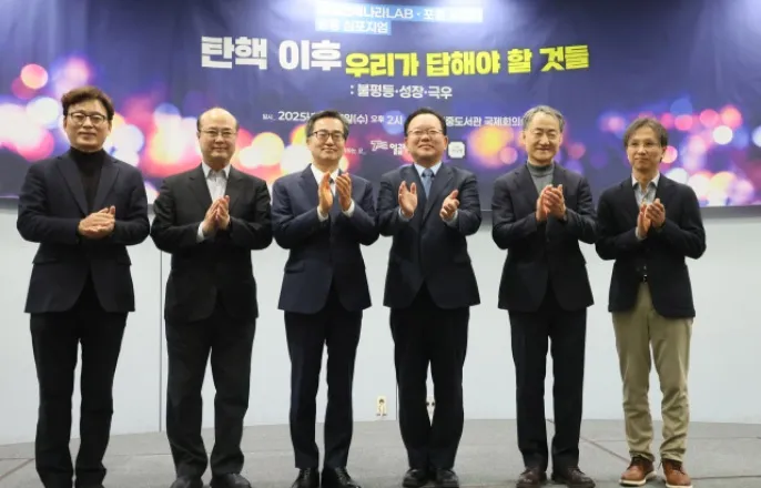 김부겸"오픈프라이머리에민주당합의했으면"…김동연"권력구조개편개헌해야"더불어민주당내비이재명(비명)계주자들이개헌의필요성을강조하며'제7공화국'출범에뜻을모았다.개헌에유보적태도를보이는민주당이재명대표를에둘러압박한것으로해석됐다.김부겸전국무총리와김동연경기도지사는5일서울마포구김대중도서관에서열린'탄핵이후우리가답해야할것들:불평등·성장·극우'심포지엄에참석해"개헌을통해제7공화국으로가야한다"고입을모았다.이날심포지엄은박광온전더불어민주당원내대표가이끄는일곱번째나라LAB과포럼사의재에서주최했다.김전총리는"헌정수호세력을하나로묶어탄핵의강을건넌세력끼리국민의마음을추스르는공동체로나아갈방향을합의하는게우리의책무"라며"그첫걸음이7공화국을준비하는개헌이라고생각한다"고개헌의필요성을강조했다.김전총리는개헌논의에적극적이지않은이재명대표를향해"현재이대표가이문제에대해서여러가지를고민중인것으로안다"며"정치하는우리모두는공적영역에서고민하고,우리들은국민의요구에답을할때"라며에둘러압박했다.앞서지난24일이대표와의만찬회동에서도김전총리는"제가'개헌,정치개혁에관한입장을밝히라'는요구를이대표에게했다"며"이대표께서는'나도생각은왜없겠나,아직은(윤석열대통령)탄핵에집중해야될때가아닌가'라고해서공방이오갔다"고밝힌바있다.또한김전총리는조국혁신당에서제안한범야권오픈프라이머리(완전국민경선제)를수용하겠다고밝혔다.그는"이런고민속에서조국혁신당이(조기대선시)오픈프라이머리로국민경선을하자고제안했다"며"민주당을비롯한정치세력이적어도여기에합의하고첫걸음을뗐으면한다"고했다.김동연경기지사역시개헌에대해공감대를보였다.그는"탄핵은끝이아니라시작이어야한다.우리는새로운나라인제7공화국으로나아가야한다"며"경제개헌과권력구조개편을내용으로하는개헌과임기단축까지여러자리에서주장한바있다.7공화국의길을만들어가야한다고생각한다"고했다.김지사는"내삶을바꾸는5대빅딜,'경제대연정'을제안한다"며△기회경제빅딜△지역균형빅딜’△기후경제빅딜△돌봄경제빅딜△세금·재정빅딜등다섯가지를제안했다.그는특히"감세로무너진나라,감세로일으켜세울수는없다.지금필요한것은감세가아니라적극적인재정의역할"이라며"필요하다면증세도말할수있어야한다"고강조했다.이역시최근감세등우클릭행보를이어가고있는이대표를겨냥한것으로풀이됐다.박광온전의원은탄핵,정권교체,개헌을과제로제시하며"야권의정권교체과정과이후를공동관리하겠다는대합의가필요하고이를위해서는대선오픈프라이머리로국민과하나되는과정을거칠필요가있다"고했다.또,"연합정부를구성해서시민이만든평등한광장이법과예산으로제도화되어야한다"고강조했다.한편이날이대표가지난2023년자신에대한국회체포동의안이가결된것을두고"(검찰이)당내일부와짜고한짓이었다.증거는없고추측"이라고한발언에대해김지사는기자들과만나"(당내의원들이)그럴리가있을까"라며"당내의원들이검찰과그렇게할거라상상을못하겠다"고했다.체포동의안표결당시원내대표였던박전의원은"그것에대해서이야기할필요가있을까"라며말을줄였다.▲5일서울마포구김대중도서관에서열린일곱번째나라LAB·포럼사의재공동심포지엄'탄핵이후우리가답해야할것들:불평등·성장·극우'에서박광온일곱번째나라LAB대표등주요참석자들이기념촬영을하고있다.왼쪽부터박대표,성한용한겨레신문선임기자,김동연경기도지사,김부겸전국무총리,박능후포럼사의재공동대표,윤홍식인하대교수.ⓒ연합뉴스[박정연기자([email protected])]Copyright©프레시안.무단전재및재배포금지.