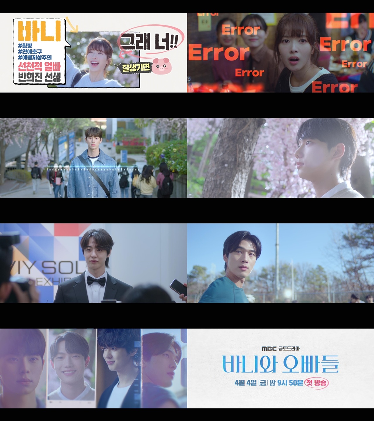 노정의의캠퍼스라이프에로맨스필터가씌워진다.iMBC연예뉴스사진오는4월4일(금)밤9시50분에첫방송될MBC새금토드라마'바니와오빠들'(연출김지훈,극본성소은,이슬,제작카카오엔터테인먼트)에서1차티저영상을공개,바니(노정의분)의시선을단박에사로잡은네오빠들의비주얼파티를보여주며기대감을높이고있다.“뭐야,저어마어마한비주얼은?”이라며감탄하는바니의목소리로시작된영상은어느날갑자기그녀의레이더망에들어온네명의오빠들을조명하며바니의캠퍼스라이프에핑크빛신호를터트린다.먼저자로잰듯,한치의오차없는조각같은외모의소유자황재열(이채민분)의모습이시선을사로잡는다.이어꽃잎처럼화사한분위기가물씬풍기는차지원(조준영분)의비현실적인모먼트가또한번이목을집중,보는이들의입꼬리를끌어올린다.여기에카메라플래시세례속에서빛을발하는조아랑(김현진분)의멋스러운자태,그리고농구하는모습만으로도테스토스테론을팡팡풍기는진현오(홍민기분)까지숨막힐듯한비주얼공격(?)이계속되면서바니의마음은물론여심을마구흔든다.이렇듯보기만해도심장에해로운(?)네오빠들과바니가어떻게얽히고설킬지호기심이샘솟는상황.“얘들아인사해.내남자친구야”라는바니의결정적한마디는과연이완벽한오빠들중누가바니의남자친구가된것일지궁금증을최고조로만든다.팍팍한캠퍼스라이프에낭만한스푼을더하는바니와네오빠들의이야기가점점더궁금해지는MBC새금토드라마'바니와오빠들'은흑역사로남아버린첫연애이후,갑자기다가온매력적인남자들과엮이게된바니의남친찾기로맨스작품.누적조회수1억7천만뷰를기록한동명의인기카카오웹툰이원작으로오는4월4일(금)밤9시50분에첫방송된다.iMBC연예유정민|사진출처MBCCopyright©MBC연예.무단전재및재배포,AI학습금지.