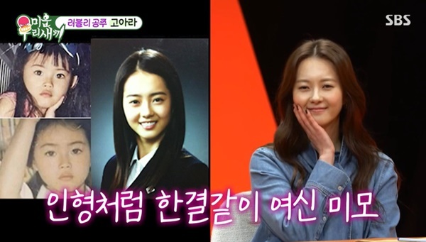 SBS‘미운우리새끼’캡처SBS‘미운우리새끼’캡처[뉴스엔유경상기자]고아라가어린시절부터완성형미모를자랑했다.2월2일방송된SBS‘미운우리새끼’에서는배우고아라가출연했다.신동엽은고아라출연에“어려서부터한번도얼굴때문에속상한적은없었다고?”라며과거사진을공개했다.서장훈이“아기때사진은할리우드배우같다”며고아라의어린시절미모에감탄했다.신동엽이“엄마가데리고나가면보는사람마다난리가났겠다”고말하자고아라는“저를아기때데리고나가면지나가던사람들이다돌아보고.그냥지나친사람이없었다고한다.어머니가말씀해주셨다”며신나게자랑한후에사과했다.김희철모친은“우리희철이도그랬다”고자랑에동참해웃음을자아냈다.신동엽이“어머니입이간질간질했다”고너스레를떨자고아라도“김희철도이목구비가너무예쁘다”고인정했다.(사진=SBS‘미운우리새끼’캡처)뉴스엔유경상yooks@기사제보및보도자료[email protected]ⓒ뉴스엔.무단전재&재배포금지Copyright©뉴스엔.무단전재및재배포금지.