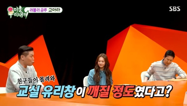 SBS‘미운우리새끼’캡처SBS‘미운우리새끼’캡처[뉴스엔유경상기자]고아라가학창시절인기를자랑했다.2월2일방송된SBS‘미운우리새끼’에서는배우고아라가출연했다.서장훈이“학창시절친구들이몰려와교실유리창이깨졌다고?”라고묻자신동엽이“남녀공학이었냐”고질문했다.고아라는“여고였는데선후배가몰리니까2층유리창이작았는데밀려서깨졌다”고말했다.고아라는“이후로같은반친구들이동그라미로보호해서같이가고,같이간식을사먹으러갔다.너무고마웠다.고등학교때참엄청난인기가있었다”고능청을떨었다.서장훈이“그랬을것같다”고하자고아라는“여고에서어떻게이런일이.그랬다”고말해웃음을줬다.신동엽은“어릴때부터활동해서소개팅을못해서억울하다고?마음에드는이성이나타나면여자지만먼저대시할수있다고?”라고질문했고,고아라는“확신이있으면그냥가는스타일같다”고답했다.신동엽이“상대가미안하다며만날수없는상황이라고하면상처받지않냐”고묻자고아라는“만날수없는상황이있을까요?선배님”이라고반문해웃음을더했다.(사진=SBS‘미운우리새끼’캡처)뉴스엔유경상yooks@기사제보및보도자료[email protected]ⓒ뉴스엔.무단전재&재배포금지Copyright©뉴스엔.무단전재및재배포금지.