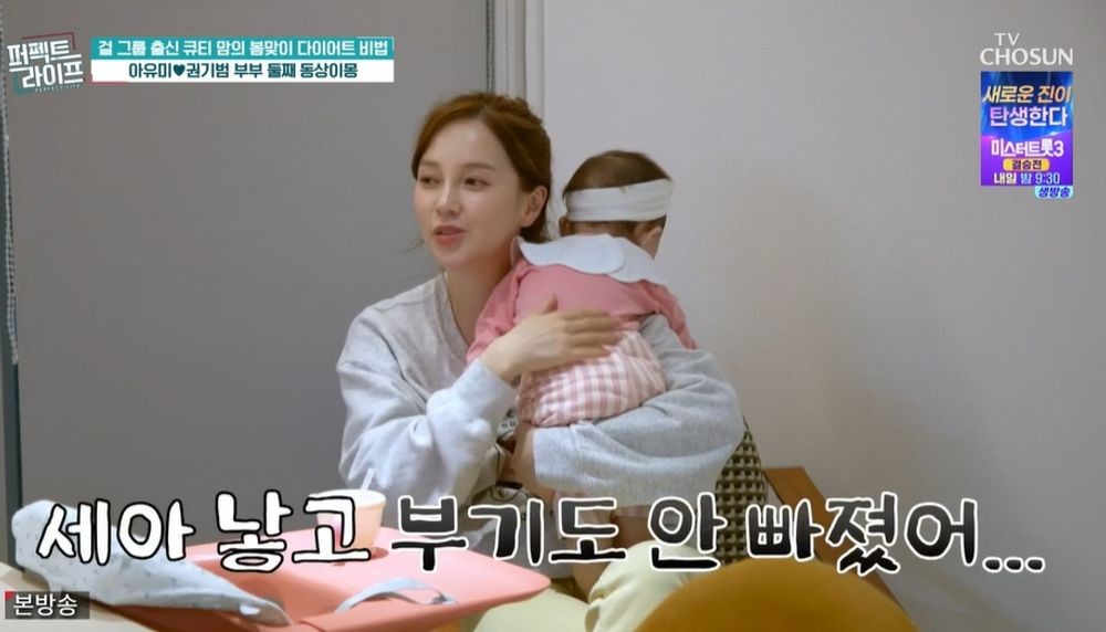 [TV리포트=남금주기자]슈가출신아유미가남편과딸을공개한가운데,둘째에대한생각을밝혔다.12일방송된TV조선'퍼펙트라이프'에는슈가출신아유미가남편권기범과의일상을공개했다.이날슈가출신아유미가등장했다.아유미는딸세아를공개하며"작년6월에태어나서9개월차"라고설명하며"엄마인줄모르고'엄마'라고하는것같다"고밝혔다.39세에딸을출산했다고.이성미가"아기같은데"라고하자아유미는"감사하다.여기저기아프다"고토로했다.아유미는임신,출산후후유증에대해"출산후살이찌니까콜레스테롤수치가높아졌다.족저근막염도발병해서아직안나았다"면서"제가(임신후)20kg쪘는데,아직10kg이남아있다.그건어떻게해도안빠지더라.예전으로돌아가고싶은데,너무무리하게다이어트했다간체력도떨어지고아기키우는데힘들것같다"라고고민을털어놓았다.전문의는출산후복부근육변화에대해"임신전엔복부근육이세로로나란히잡혀있는데,임신하면배꼽을중심으로근육이양쪽으로분리된다"며"한번늘어난근육은100%돌아오는건힘들다"고설명했다.아유미는"젊을땐1일1식,원푸드다이어트를해도금방빠졌는데,지금은안먹자니체력이안되고아기는키워야하니너무힘들다"고했다.전문의는"체지방을낮추고근육량을늘려서기초대사량을증가시켜야살이잘빠진다"고조언했다.이어아유미의일상이공개됐다.오지호가"아이가말을알아듣는것같다"고하자아유미는"제딸이지만똑똑한것같다.천재인것같다.만지라고하면만지고,먹으라고하면먹는다"고자랑했다.이유식을직접만든다는아유미는"육수부터직접만들어서소분해서얼려놨다.아기가처음접하는재료가많아서알레르기를파악하려고3일씩만들고있다"고밝혔다.딸이잠깐자는시간동안아유미는후딱식사를차려먹었다.전문의는"국에말아서급하게밥을먹으면누구나살이찔수밖에없다"고밝혔다.아유미가육아에지쳐갈때쯤남편이등장했다.남편은아유미를위한다이어트식을준비하다"세아가너무예쁘니까하나더낳고싶지않아?"라며"유부초밥만들다보니둘째가갖고싶어.아들하나있으면좋겠다"는바람을전했다.아유미는"성별얘기하는건꼰대"라면서"세아낳고부기도안빠졌다"고토로했다.그러나남편은"그럼평생쉰대"라고했고,아유미는"열심히운동하고건강한몸이되면그때다시이야기하자"고진정시켰다.남편은"내가만들어준유부초밥먹고둘째가자"고밝혔다.스튜디오에서이성미가"둘째안낳고싶냐"고묻자아유미는"세아가너무예뻐서둘째생각이나긴한다"고했다.남금주기자[email protected]/사진=TV조선'퍼펙트라이프'Copyright©TV리포트.무단전재및재배포금지