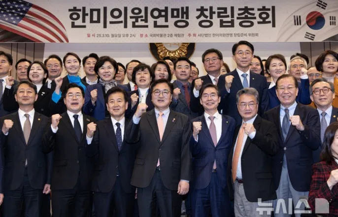 여야162명합류…트럼프2기대응공동회장에조경태·정동영임명[서울=뉴시스]조성봉기자=우원식국회의장,권영세국민의힘비상대책위원장,박찬대더불어민주당원내대표,조경태,정동영한미의원연맹공동회장을비롯한의원들이10일오후서울여의도국회박물관에서열린한미의원연맹창립총회에서기념촬영을하고있다.앞줄왼쪽부터안덕근산업통상자원부장관,박찬대원내대표,정동영공동회장,우의장,조경태공동회장,조셉윤주한미국대사대리,권영세국민의힘비상대책위원장,조태열외교부장관.(공동취재)[email protected][서울=뉴시스]하지현한은진한재혁기자=한미동맹강화를위한초당적국회기구인'한미의원연맹'이10일창립총회를열고공식활동을시작했다.우원식국회의장은이날오후서울여의도국회박물관에서열린창립총회에서"계엄이후국제사회가우리를바라보는시선에우려가많다"며"한미동맹을더발전시키고원활한관계를만들기위해여야가머리를맞대고활동하는것을적극추진해달라"고당부했다.그는"지금처럼어려운시기에한미의원연맹의창립은역사적으로도큰의미가있다"며"우리기업이투자하는미국지역마다책임의원을정하는계획도세운것으로아는데,적절한현지적응형전략"이라고평가했다.이날한미의원연맹임시의장에선출된조정식민주당의원은"올해는한미동맹72주년이되는해"라며"한미의원연맹은굳건한한미동맹을기반으로양국간미래를준비하는발판이될것"이라고강조했다.한미의원연맹창립준비위원회공동회장인정동영민주당의원은"여야의원끼리22대국회들어오늘처음만났다고하는데,이게우리국회의현주소"라며여야간초당적협력필요성을짚었다.공동회장인조경태국민의힘의원은"초당적협력을통해한미동맹의전략적가치를극대화하겠다"며"국익을위한실질적성과창출을위해의원차원의외교활동을적극추진하겠다.정부의협력도적극요청할계획"이라고말했다.권영세국민의힘비상대책위원장은"한미동맹은과거군사·안보동맹에서경제·기술·산업·공급망·우주등분야에서전략적으로협력하는가치동맹으로발전시켜야한다"며"대한민국이글로벌변화를주도하는국가가되도록,국회가초당적협력을강화하고실질적인외교성과를내는플랫폼이되길바란다"고밝혔다.박찬대더불어민주당원내대표는"지금대한민국의여러정치혼란과어려옴속에서도여야가힘을합쳐한미의원연맹을창립한건참으로뜻깊다"며"현재의고난은우리가감당할세계사적의미를보여줄것"이라고주장했다.한미의원연맹은임원을포함해여야162명의의원이회원으로가입했다.이날총회에서는창립경과보고와임시의장선출,출연예산안·사업계획안및법인사무소설치등을포함한주요안건이의결됐다.총회에는우의장과권위원장,박원내대표등여야지도부를비롯해조태열외교부장관·안덕근산업통상자원부장관,조셉윤주한미국대사대리등이참석했다.한미의원연맹은양국의회간정기적교류와공동연구,관계발전을위한포럼등을개최해실질적인협력을도모할예정이다.☞공감언론뉴시스[email protected],[email protected],[email protected]©뉴시스.무단전재및재배포금지.