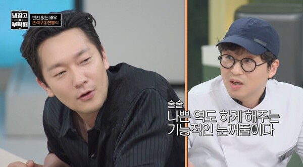 사진=JTBC'냉장고를부탁해since2014'[스포츠한국신영선기자]배우손석구가최강록셰프의디테일한칭찬에고마워했다.2일방송된JTBC'냉장고를부탁해since2014'(이하'냉부해')에서는손석구,현봉식이게스트로출연했다.이날손석구는'냉부해'를즐겨봤다며'흑백요리사'도좋아해일부러검은색옷을맞춰입었다고밝혔다.그는옆에앉은에드워드리셰프에대해"'흑백요리사'때감동을받았다.어느정도커리어를이룬상태에서오디션프로그램에나간다는것자체가안전한선택을할수도있는반면에파격적인선택을하신게나라면그런선택을할수있었을까"라고말했다.이를들은에드워드리는자리에서일어나손석구와포옹하며고마워했다.그동안늘말이없던최강록은손석구의팬이라며먼저나서서그이유를설명했다.최강록은손석구에대해"'범죄도시'시리즈중최고의나쁜놈"이라며"제가분석해보니까눈이타고났다.조선시대벽화에나오는여인상을보면쌍꺼풀이없다.그눈꺼풀이착한역도하게해주고나쁜역도하게해준다"고말했다.이에손석구는"저는눈꺼풀칭찬은처음들어봤다.그렇게디테일한칭찬은처음들어봤다"고밝혔다.이연복셰프는"최강록이'냉부해'에서가장길게한얘기다"라며놀라워했다.스포츠한국신영선기자[email protected]©스포츠한국.무단전재및재배포금지.