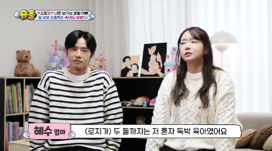 (엑스포츠뉴스이유림기자)오종혁의아내가오종혁이아이와보내는시간이적었다고밝혔다.12일방송된KBS2TV'슈퍼맨이돌아왔다'에서는‘오로지너만의슈퍼맨’편으로3MC박수홍,최지우,안영미와슈퍼맨오종혁,박수홍이함께했다.이날새로운슈퍼맨으로오종혁이등장했다.그의딸,32개월된로지는카메라감독에게"로지어때요?"라고귀여운매력을뽐내고있는가운데,오종혁이로지를부르며모습을드러냈다.스튜디오에서박수홍은"종혁씨가고등학생일때저랑봤다.그때정말미소년이었다"며오종혁과의오랜인연을언급했고,"로지가그모습이있더라.아빠닮았다.너무예쁘고귀엽다"고칭찬을아끼지않았다.자료화면을통해오종혁의어린시절사진과로지의사진이비교되었고,두사람의똑닮은외모에스튜디오의모두가놀라움을표했다.오종혁역시"진짜닮았네?"라며신기해했다.오종혁과로지는외모뿐만아니라성격과끼까지닮은점이많았다.오종혁은"로지가낯가림이0.0001%도없다"고전했고,그말대로로지는처음만난카메라삼촌에게도쉽게다가가는친화력을보였다.로지의성격이엄마와아빠중누구를닮았냐는질문에오종혁은"제가어렸을때별명이백원만이었다.'아저씨.100원만요'라고하면어이없어서주셨다더라"며자신을닮았다고답했다.그런가하면,오종혁의아내는오종혁과로지가단둘이있던적이있냐는질문에"아니요.(로지가)두돌까지는완전쌩독박이었다"라고단칼에답했다.이어아내는"로지가오빠를엄청싫어했던시절이있었다.오빠가로지랑시간을보내면좋지않을까"라고바람을드러냈다.이와관련해오종혁은"코로나시기에로지가태어났다.사실저희가다겪었듯이코로나때모든일이(끊겼다)"며"힘든시기여서타개하기위해돌아다녔다.1년에5일쉬었다"라고아이와함께할시간이부족했던이유를설명했다.사진=KBS2TV방송화면이유림기자[email protected]©엑스포츠뉴스.무단전재및재배포금지.
