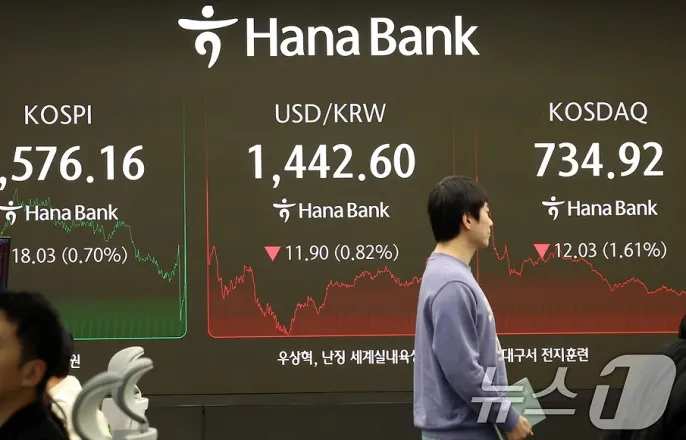 코스피,0.49%하락한2563.48마감달러·원환율,4.4원오른1446.80원마감서울중구하나은행본점딜링룸전광판./뉴스1ⓒNews1김명섭기자(서울=뉴스1)문혜원기자=코스피가0.49%하락마감했다.미국고용지표발표를하루앞둔가운데국내정치적불확실성까지더해지면서약세를보였다.7일한국거래소에따르면코스피는전일대비12.68p(0.49%)하락한2563.48로거래를마쳤다.개인이1867억원을팔아치웠다.반면기관은301억원,외국인은498억원각각사들였다.코스피는이날큰변동성을보였다.장초반전일대비1.35%하락한2541.49까지내렸다가오후들어낙폭을줄이며2575.48까지회복했다.상승전환을눈앞에둔상황에서윤석열대통령의구속취소소식이나오자다시낙폭이확대됐다.서울중앙지법형사합의25부(부장판사지귀연)는이날윤대통령측의구속취소청구를인용했다.이에따라윤대통령은서울구치소에서절차를거쳐석방될전망이다.코스피시가총액상위10개종목중한화에어로스페이스(012450)7.82%,LG에너지솔루션(373220)1.5%,삼성전자우(005935)0.66%등은상승했다.NAVER(035420)-2.74%,삼성바이오로직스(207940)-2.65%,셀트리온(068270)-2.18%,기아(000270)-1.22%,삼성전자(005930)-1.1%,현대차(005380)-0.51%등은하락했다.미국비농업고용지표발표를하루앞두고있다는점도지수상방을제한하는요소였다.이경민대신증권연구원은"아시아증시에서불안심리가완화됐고중국증시상승에따른훈풍으로장초반하락폭이축소되는흐름을보였지만이날밤미국고용지표발표를앞둔경계감에상승폭이제한됐다"고설명했다.ⓒNews1윤주희디자이너코스닥은전일대비7.22p(0.98%)하락한727.70으로거래를마쳤다.장초반738.10까지오르면서상승세를타는듯했으나하락전환한이후오후들어낙폭을확대했다.외국인은354억원,개인은709억원각각순매수했다.기관은998억원순매도했다.코스닥시가총액상위10개종목중에코프로비엠(247540)3.37%,에코프로(086520)1.36%,HLB(028300)0.35%등은상승했다.파마리서치(214450)-6.15%,리가켐바이오(41080)-6.0%,알테오젠(96170)-5.63%,휴젤(45020)-4.12%,레인보우로보틱스(277810)-1.83%,클래시스(214150)-1.01%,삼천당제약(000250)-0.31%등은하락했다.서울외환시장에서달러·원환율은전일오후3시30분종가대비4.4원오른1446.80원에마감했다[email protected]©뉴스1.Allrightsreserved.무단전재및재배포,AI학습이용금지.