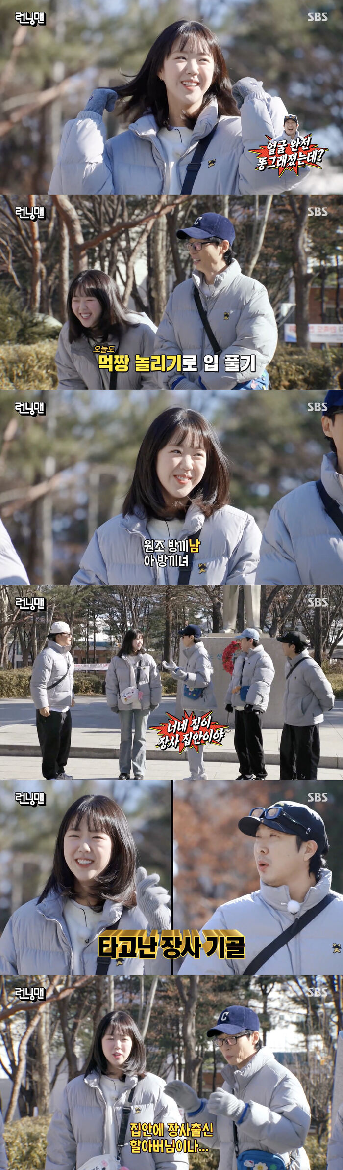 [SBS연예뉴스|김효정에디터]유재석이지예은의집안에대한추측을공개했다.2일방송된SBS'런닝맨'에서는지예은을놀리는멤버들의모습이그려졌다.이날하하는지예은의등장에"지예은예뻐졌다.얼굴완전똥그래졌는데?"라고했다.이에유재석은지예은을먹짱이라고했고,하하는"원조방끼남,아니방끼녀"라고말해눈길을끌었다.그러자유재석은"너는끼니를방송에서하고얘는어디서든하고그차이가있다"라고했고,하하는"총량으로따지면얘가많을걸?"라며지적했다.그리고유재석은지예은에게"너집에가서물어봐.내가봤을때장사집안이야.타고난기골이장대하다.꼭여쭤봐라,집안에장사가있을거다"라고말해폭소를자아냈다.Copyright©CopyrightⓒSBS.Allrightsreserved.무단전재,재배포및AI학습이용금지