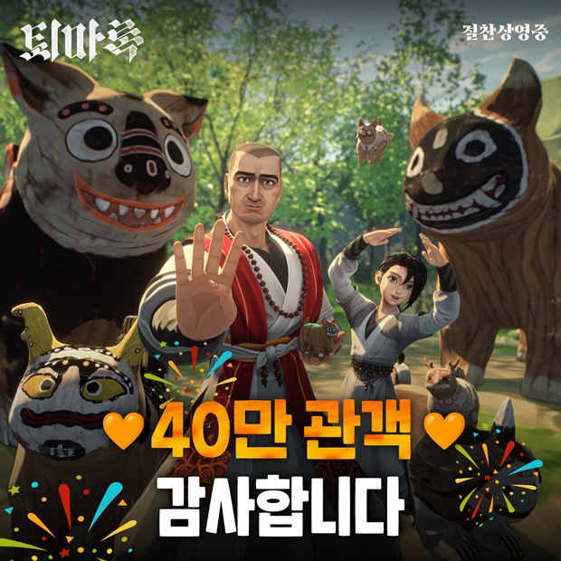퇴마록[티브이데일리최하나기자]‘퇴마록’이40만관객을돌파했다.특별한능력을가진퇴마사들이절대악(惡)에맞서는대서사의시작을담은오컬트블록버스터‘퇴마록’이40만관객을돌파하며흥행저력을과시하고있다.영화관입장권통합전산망에따르면‘퇴마록’이13일기준누적40만관객을돌파해화제를모으고있다.이는성인을타겟으로한한국애니메이션중괄목할만한성과를이룬것으로꾸준한입소문에힘입어2025년한국애니메이션흥행1위기록경신을예고하고있어이목을집중시킨다.또한,CGV성별및연령별예매분포에따르면개봉당시와비교해여성관객의비율과2030세대의예매비율이5%이상상승한것을확인할수있어원작팬들은물론이번작품의통해‘퇴마록’에입문한관객들까지사로잡으며팬덤세력을확장하고있다.40만관객을기념하며공개된이미지는관객들에게뭉클한감동을선사한준후와장호법의모습을담아눈길을끈다.근엄한표정으로숫자‘4’를표현한장호법과천진난만하게크게‘0’을그리고있는준후그리고관객들의마음을사로잡은귀여운목각인형들이보는이들을웃음짓게한다.누적40만관객을돌파하며한국애니메이션계에새바람을일으키고있는영화‘퇴마록’은전국극장에서절찬상영중이다.[티브이데일리최하나기자[email protected]/사진=영화'퇴마록']퇴마록[Copyrightⓒ*세계속에新한류를*연예전문온라인미디어티브이데일리(www.tvdaily.co.kr)/무단전재및재배포금지]Copyright©티브이데일리.무단전재및재배포금지.