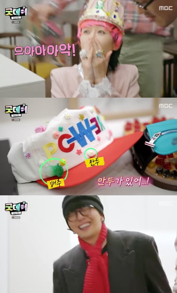 굿데이[티브이데일리최하나기자]‘굿데이(GoodDay)’지드래곤이찐팬인홍진경과만났다.2일밤방송된MBC예능프로그램‘굿데이(GoodDay)’3회에서는지드래곤이기안84,홍진경과만났다.이날홍진경과의만남에흥분한모습을보였다.특히홍진경은지드래곤이선물로지압슬리퍼에큰감동을받은모습을보여웃음을자아냈다.그러면서홍진경은지드래곤을비롯해출연진과함께지압슬리퍼를신은모습을촬영해눈길을끌기도했다.또한지드래곤은홍진경에게커스텀모자를선물했다.이에홍진경은커스텀모자를들고는만세를외쳐웃음을자아냈다.[티브이데일리최하나기자[email protected]/사진=MBC‘굿데이’]굿데이[Copyrightⓒ*세계속에新한류를*연예전문온라인미디어티브이데일리(www.tvdaily.co.kr)/무단전재및재배포금지]Copyright©티브이데일리.무단전재및재배포금지.