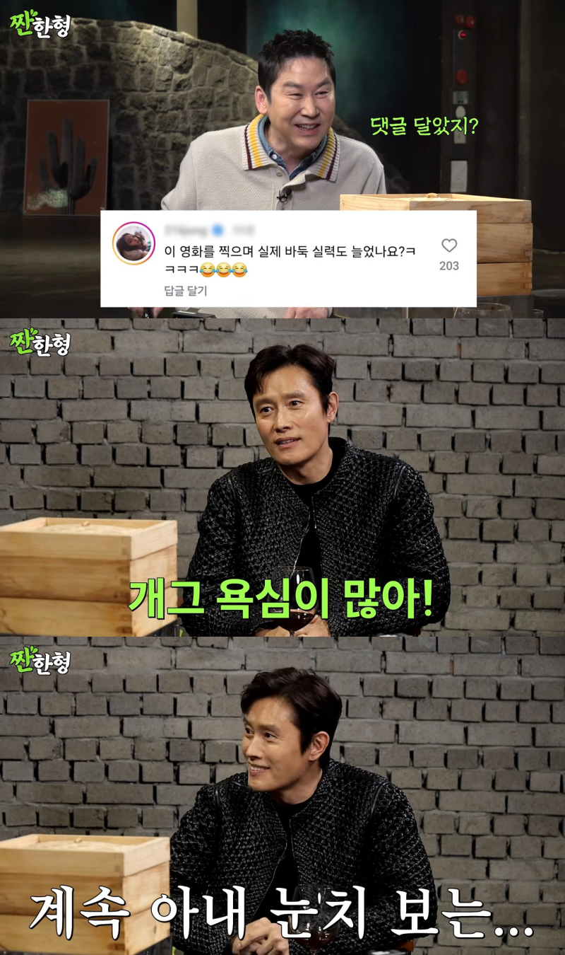 배우이병헌이아내이민정의눈치를본다고말했다.24일유튜브채널‘짠한형신동엽’에는“재탕인가했지만,ㄷㄷㅗㅇ얘기까지간다!찐친주의”라는제목의영상이게재됐다.해당영상에는오는26일개봉하는영화‘승부’의주역인이병헌이출연해신동엽,정호철과이야기를나눴다.이날신동엽은이병헌이올린‘승부’와관련된SNS게시물에댓글을남긴이민정을언급했다.이민정은해당게시물에‘이영화를찍으며실제바둑실력도늘었나요’라고댓글을남겼다.이병헌은이민정에대해“개그욕심이많다”고설명했다.신동엽은“병헌이랑술을마시면,아이자고난다음에민정씨가쓱합류한다.너무웃기다.그욕심도느껴진다”고말했다.이병헌은“웃기는그런댓글을달면,집에와서바로‘그거왜그렇게한거야?’라고얘기한다,이제너무즐기는것같다”고토로했다.이병헌은계속아내이민정의눈치를본다고밝히며“나는이제결혼초에는여자와남자가완전히다르다는것을5년이상몰랐던것같다.나는솔루션을주면괜찮아질줄알고위로를했는데‘오빠들어’라고하더라.그래서그냥들었다”고말했다.한편,‘승부’는대한민국최고의바둑레전드조훈현(이병헌)이제자와의대결에서패한후타고난승부사기질로다시한번정상에도전하는이야기를그린다.이수진기자[email protected]©일간스포츠.무단전재및재배포금지.