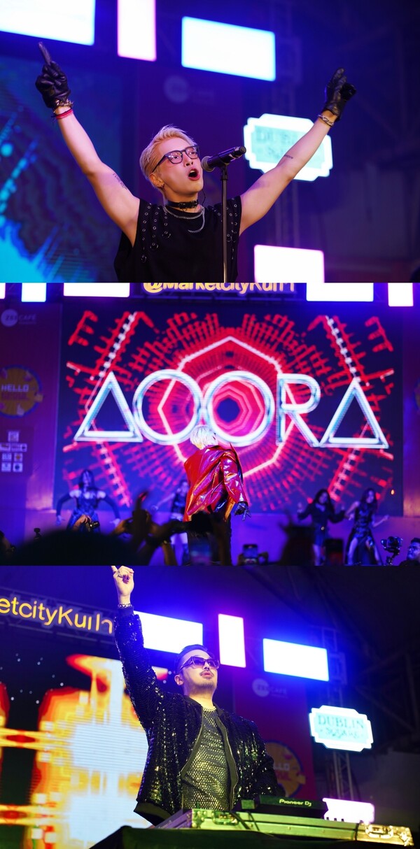 ▲제공|(주)일공이팔,HBCHOUSE,vectormob[스포티비뉴스=김원겸기자]가수아우라(AOORA)가6000여명의인도팬들을사로잡았다.아우라는지난22일인도뭄바이최대규모쇼핑몰인피닉스마켓시티에위치한더블린스퀘어에서콘서트를개최하고현지팬들과만났다.아우라는자신의곡‘TWERK’,‘JimmyJimmy’,‘AUVAAUVA’등과발리우드명곡들을재해석한‘BuddhuSaMann’,‘SoorajDoobaHain’등을라이브로1시간가량선보이며분위기를뜨겁게달궜다.이어무대에오른DJ프라이데이(FRIDAYYY)는K펍으로만가득채운믹스세트로인도유일의K팝DJ로서역량을증명했다.현장에모인6000여명의현지팬들은믹스된한국음악을귀와몸으로즐겼다.아우라와프라이데이가함께한이번공연은지카페주최로열렸다.K-뷰티와한국음식등다양한한국문화체험부스는물론아우라가광고모델로활약했던빙고등다양한기업들이함께하며한국과인도문화를동시에즐기는화합의장이됐다는평가를받았다.한편아우라는인도를중심으로공연,방송,광고등다양한영역에서활약하고있으며새앨범발매를목표로작업에집중하고있다.<저작권자ⓒSPOTVNEWS.무단전재및재배포금지>Copyright©스포티비뉴스.무단전재및재배포금지.
