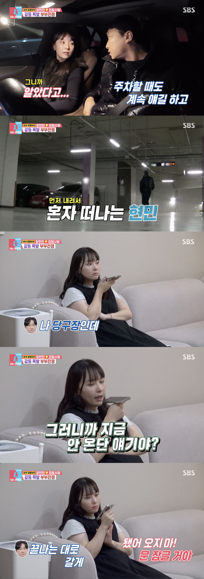 [SBS연예뉴스|김효정에디터]양현민과최참사랑이싸움을벌였다.10일방송된SBS'동상이몽시즌2-너는내운명'(이하'동상이몽2')에서는양현민최참사랑부부의일상이공개됐다.이날두사람은운전을하는내내다투었다.주차할때까지도두사람의언쟁은계속되었고결국양현민이폭발해자리를떴다.집으로돌아온최참사랑은양현민에게전화를걸었다.몇차례시도끝에전화를받은양현민은당구장에있다고했다.이에최참사랑은"또갔어?"라며날을세웠다.양현민은기분을가라앉히기위해왔다고해명했지만최참사랑의화를돋울뿐이었다.최참사랑은"그러면아침까지계속당구쳐.난문잠글게"라고경고했다.그럼에도최참사랑은남편이돌아오길기다렸다.그러나결국양현민은돌아오지않았고이에화가난최참사랑은이중잠금을걸어눈길을끌었다.Copyright©CopyrightⓒSBS.Allrightsreserved.무단전재,재배포및AI학습이용금지