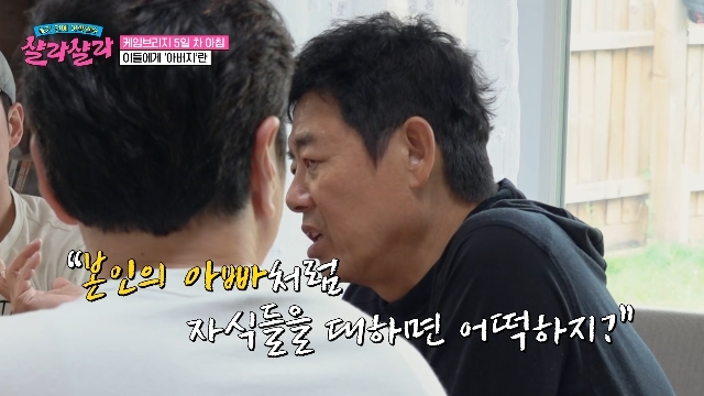 JTBC‘늦기전에어학연수샬라샬라’캡처JTBC‘늦기전에어학연수샬라샬라’캡처JTBC‘늦기전에어학연수샬라샬라’캡처[뉴스엔서유나기자]배우성동일이불우한가정사로생긴안타까운고충을고백했다.3월1일방송된JTBC예능'늦기전에어학연수샬라샬라'5회에서는평균나이52.8세중년배우5인방성동일,김광규,엄기준,장혁,신승환의영국케임브리지어학연수기가이어졌다.케임브리지생활5일차,아침부터집근처의체리힌턴홀공원으로산책을간성동일은공원곳곳놓인벤치에사랑하는이들을기리는추모명패가있는것을발견했다.일명'메모리얼벤치'였다."문화가특이하네.이의자보면생각나겠네"라며감탄한성동일은이중꽃이놓여있는벤치의명패를확인하곤안타까움을드러냈다.35살젊은나이에별이된명패주인과,그를위해꽃을놓고갔을가족을상상한성동일은"먼저하늘나라로간이분하고같이있는것같네"라며벤치에앉아잠시조용히시간을보냈다.이자리에서성동일은"'시간을할애하는수밖에없다'는얘기를어제했다"며지난밤멤버들과아버지와의추억을나눴던것을회상했다.당시엄기준은"전아버지가일찍돌아가셔서아버지와함께한추억들이거의없다.아버지가(제가)초5때수술을하셔서그때부터안좋아지셔서고1때돌아가셨다.초등학교수술하신뒤로한달에두번봤나?합병증으로혈액을못만드는게생긴거다.매번피투여하는주사맞고점점야위셨다"고털어놓았다.이에성동일은"나도사생아로태어나아이들을낳았잖나.너(엄기준)하고똑같다.아버지와한기억이어떤것도없으니까방법을모른다.내가스키를탄다?나이가있잖나.젊은아빠는같이탈수있는데난못탄다.야구도축구도안된다.그러다보니그게너무미안하더라"고본인얘기를꺼냈다.이어"우리아내가제일걱정한게그거라더라.아빠와자식의관계를몰라서이사람이혹시라도본인아빠처럼자식들을대할까봐.그걸계속갖고있었다.근데결혼은뭔지아냐.은연중(서툰모습이)많이나온다.아빠가자식에게어떻게해야하는지,화가나도어떻게참아야하는지,어떻게아이들을다독여야하는지방법을모른다"고토로했다.그는"(아들)준이가얘기하더라.'진짜아빠무서웠다'고.말투가엄격하니까.요즘애들에게되게미안하다그게.지금와서고치려니까말투도바꿔야한다.그걸후회한다.조금일찍표현할걸.그래서'응답하라1988'에서내가한대사가'미안해.아빠도아빠가처음이니까'다"라고고백해뭉클함을자아냈다.산책에서귀가한성동일은딸율이에게영상통화를걸었다."율아,성율.안보인다얼굴.아빠보고싶지?안보고싶어?"라고다정한목소리를낸성동일은율이의"네?"라는한마디답변에도마냥웃으며자식사랑을드러냈다.한편성동일은과거'무릎팍도사'에출연해"나는부모님에게원치않는아이였다.8살터울의누나손에서자랐다.10살때어머니가다시아버지와합치면서부모님의혼인신고로정식으로호적을갖게됐다"며"나를원망한아버지께서는나를많이미워하셨다.아버지를만난다음날부터맞았다.보다못해동네사람들이피신시키기도했다"고털어놓은바있다.성동일은지난2003년박경혜씨와결혼해슬하에아들성준,딸성빈,성율을두고있다.뉴스엔서유나stranger77@기사제보및보도자료[email protected]ⓒ뉴스엔.무단전재&재배포금지Copyright©뉴스엔.무단전재및재배포금지.