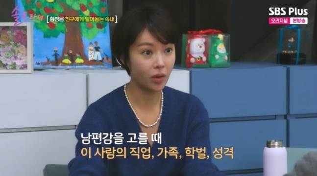 SBSPlus·E채널'솔로라서'화면캡처그룹슈가출신배우황정음(41)이배우자조건을털어놨다.지난11일방송된SBSPlus·E채널'솔로라서'에서는황정음이슈가멤버아유미와육혜승을집에초대해이야기를나눴다.아유미는"남편의부모가너무좋았다"며남편과결혼을결심한이유를밝혔다.이에황정음은"너무중요하다.진짜중요하다"고강조했다.아유미는"남편이엄청나게(부모의)사랑을받고자랐다는생각이들었다.나는이분들의가족이되고싶다는생각이들었다"고떠올렸다.황정음은"나는사람관계에있어서한번도좋은사람을만나려고노력해본적이없다"고밝혔다.그러면서"태어나서단한번도"라고강조했다."(사람을만날때)따지거나재지않았다"며"심지어과일을살때도뭐가더좋은지본다.남편감을고를때이사람의직업·가족·학벌·성격,안좋을때는어떤성향인지,돈을벌었을때어떨지를하나도생각하지않았다"고덧붙였다.아유미가"꼼꼼하게안봤냐"고묻자황정음은"아예안봤다"고답했다.아유미는"오로지사랑하는마음이냐"고물었다.황정음이"그렇다"고털어놓자아유미는"그것도나쁘지않다"고했다.황정음은"후회없다.내가만약조금사랑하지않는남자인데,조건이좋아서결혼했다면···"이라고말했다.아유미는"그게행복하지않을수있다"고말했다.황정음은"당연하다"고화답했다.그러면서"(결혼이)되게어려운것같다"고덧붙였다.한편황정음은2016년프로골퍼출신사업가이영돈(43)과결혼,이듬해첫째아들왕식을낳았다.결혼4년만인2020년9월법원에이혼조정신청서를제출했으나,2021년7월재결합했다.다음해둘째아들강식도안았다.그러나재결합3년만인지난해2월두번째이혼소송중인소식이알려졌다.당시소속사와이원엔터테인먼트는"황정음씨는많은심사숙고끝에'더이상혼인을유지하기어렵다'는결정을내렸다.이혼사유등세부사항은사생활이라밝힐수없는점양해부탁드린다"고청했다.한윤종기자[email protected]©세계일보.무단전재및재배포금지.
