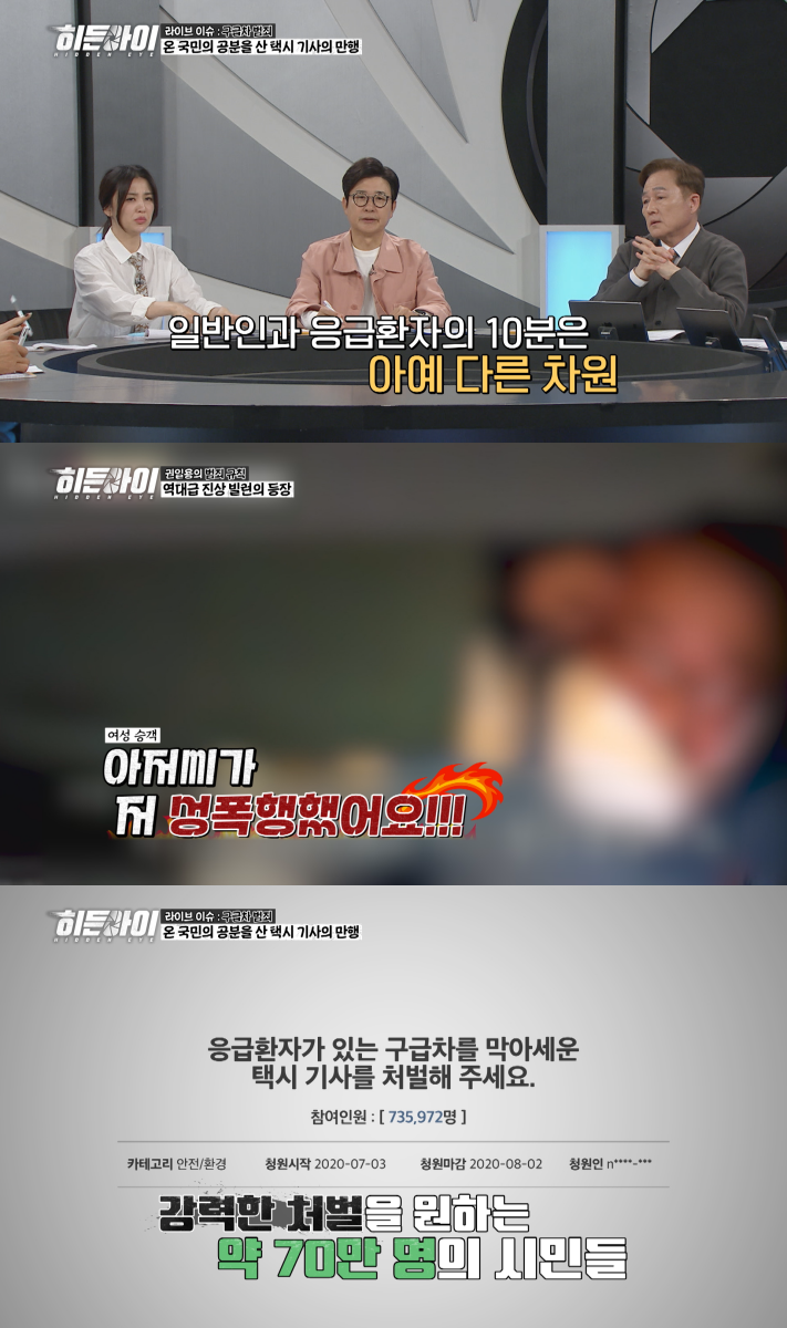 3월24일월요일오후7시40분MBC에브리원에서는CCTV,바디캠,블랙박스등다양한영상을통해사건,사고를분석하는범죄분석코멘터리쇼'히든아이’가방송된다.iMBC연예뉴스사진'현장세컷’에선한밤중아파트의평화를깬난동사건이소개된다.자정무렵,아파트에서배달하던택배기사가갑자기어딘가를노리며'이것’을쏴출연진들의손에땀을쥐게했다.곧이어택배기사가사용한도구의정체와황당한범행이유가드러나자김동현은“말도안되는변명”이라며단호하게일축했다.프로파일러권일용은택배기사가사용한물건이시속360km까지나오기때문에목숨을앗아갈수도있는'살상무기’라고표현해출연진들을긴장하게만들었다는후문.모두를패닉에빠트린택배기사가쏜'이것’이무엇일지공개될예정이다.권일용의범죄규칙에서는도를넘은진상손님들의기가막힌행태를들여다본다.술에취한채택시안에서난동을부리던한여성.택시기사가여성을경찰에신고하자갑자기그를무차별폭행하며살해협박까지이어갔다.그러고는오히려자신이성폭행을당했다고말해무죄를주장하는택시기사와의진실공방이벌어진것!이를보던소유는“블랙박스에증거가다있잖아요”라며답답해하기도했다고.택시안블랙박스로여성승객과택시기사의성폭행사건,그진실을파헤쳐본다.한편,무인꽃집에서계산도하지않은채꽃을들고사라진남성이범행3시간만에다시현장에돌아온이유와출연진들을'심쿵’하게만든범행의동기가밝혀진다.라이브이슈에서는'구급대원과구급차’를둘러싼위험천만한사건,사고들을살펴본다.병원인근에서구급차를훔쳐달아난뒤번화가에서구급차위에올라가쿵쿵거리며난동을부린남성.심지어차로인파를뚫고질주하는만행을저질러출연진들을아연실색하게만들었다.구급차를탈취해번화가한복판에서난동을부린남성이범행을벌인이유를알아본다.이어70만명이상의사람들이국민청원에참여한역대급사건을다룬다.호흡곤란을일으킨80대폐암말기환자를이송중이던사설구급차와접촉사고가난택시기사는“환자죽으면내가책임진다”며구급차의이동을막았고,“죽는병아니잖아”라는막말까지서슴지않았다.결국택시기사가구급차를막아서서병원이송시간이지체된환자는사망하고말았는데.택시기사의망언을들은박하선은“골든타임을놓쳤잖아요!”라며격앙된반응을보였다.출연진들을분노에빠트린택시기사의만행과믿기힘든재판결과는3월24일월요일오후7시40분MBC에브리원'히든아이’에서확인할수있다.iMBC연예유정민|사진출처MBC에브리원Copyright©MBC연예.무단전재및재배포,AI학습금지.