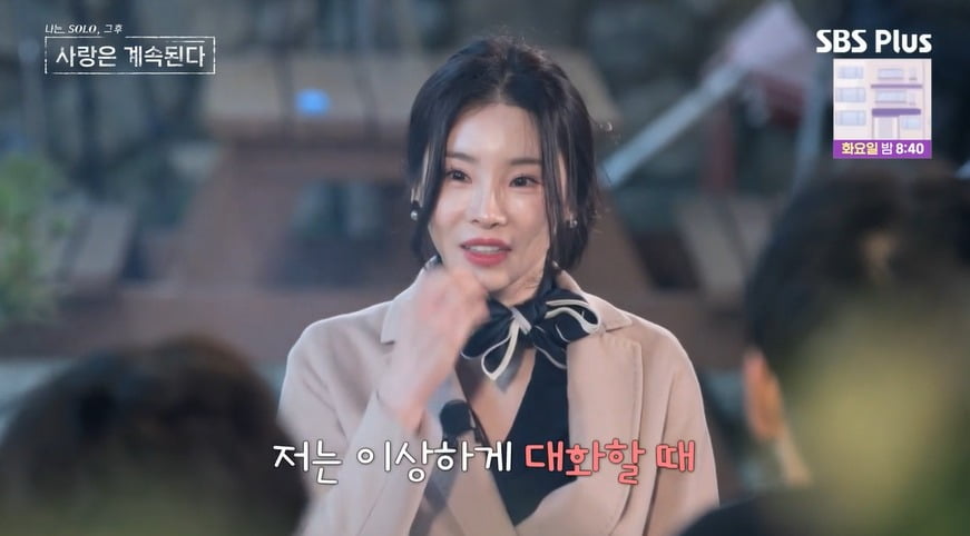 [텐아시아=조나연기자]사진=SBSPlus,ENA'나는SOLO,그후사랑은계속된다''나솔사계'최초의'골싱특집'이공개됐다.20일방송된SBSPlus와ENA의'나는SOLO,그후사랑은계속된다'(이하'나솔사계')에서는'골싱민박'에입소한여자출연자들의'자기소개타임'이펼쳐졌다.이날방송에서네명의여자출연자인백합,국화,동백,장미의자기소개가공개됐다.특히국화는한번도결혼을하지않은'골드'라밝혀눈길을끌었다.그는"Q항공사에서2년정도근무했고,대한항공에서10년근무했다.대학교수로3년재직을했다"며"현재는승무원양성학원을운영하고있다"고소개했다.국화는이상형에대해"대화할때제모습을편안하게드러내게해주는사람이좋다"고밝혔다.또한그는"나이는85년생이고,그래서시급하게여기나왔다"며제작진과의인터뷰에서결혼을못한이유도얘기했다.사진=SBSPlus,ENA'나는SOLO,그후사랑은계속된다'제작진이"까다롭게남자를고른거냐"고물었고,국화는"까다롭게남자를고른게아니다.제가결혼하고싶으면상대방이거절했다.그랬던적이많았다.마지막연애도하고싶었는데사업을확장하고싶어서결혼생각이없다고하더라.처음에는분명히결혼생각이있다고했는데"고털어놨다.108배를시작했다는국화는"도와달라고했는데'나솔사계'에서연락이와서깜짝놀랐다.주변에서나는솔로나가보라고했는데신기했다"고소감을전했다.좋아하는남자가아이가있는돌싱이라면어떨거같냐는질문에국화는"갔다온사람이어쩌면더평범할수있다는말을했었는데저는돌싱도괜찮고아이까지는생각해보지는않았지만경험치상어쩌면내가좋은엄마가될수도있을것같다는생각도해봤다"고진솔하게답변했다.조나연텐아시아기자[email protected]©텐아시아.무단전재및재배포금지.