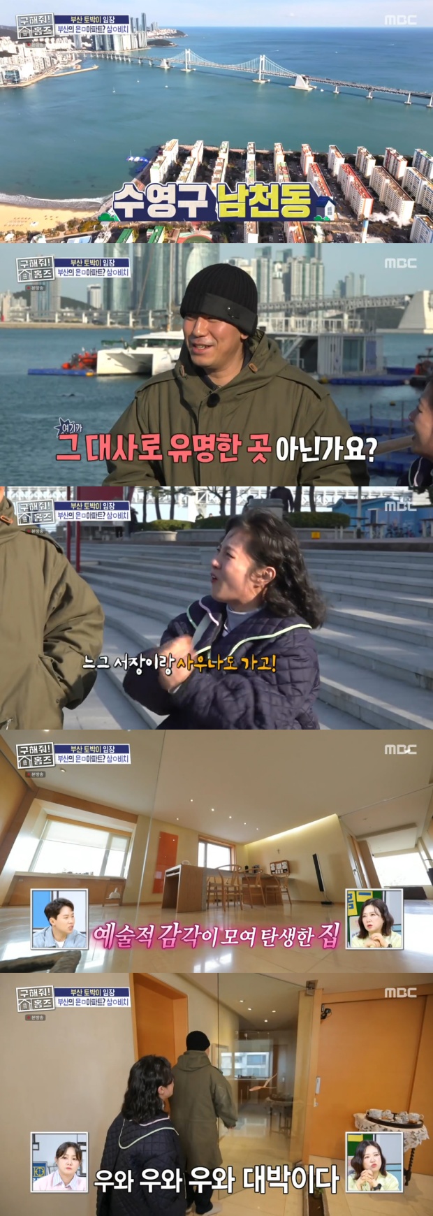 티브이데일리포토[티브이데일리한서율인턴기자]'구해줘홈즈'코미디언박나래가성대모사를뽐내며남천동으로향했다.20일밤방송된MBC예능프로그램'구해줘홈즈'에서는이시언이박나래와부산아파트를둘러보는모습이그려졌다이날두사람은영화'범죄와의전쟁'에서유명한동네부산남천동으로향했고,부산토박이로알려진이시언이부산최고의부촌아파트를소개했다.남천동바닷가에도착한박나래는최민식의유행어"느그서장남천동살제"라며성대모사를선보여웃음을자아냈다.이어박나래는"부산의은마아파트아니냐"라며곧재개발에들어가는아파트라고짚었다.이시언은이아파트가재개발단계5단계에들어섰다는소식을듣고깜짝놀라기도했다.두사람이임장할아파트는1979년준공된3060세대아파트로푸른바다바로앞에위치한아파트로,준공된아파트는1980년대부산최고의부촌아파트로불렸다고한다.박나래와이시언은가장큰평수의집을둘러보면서집주인의리모델링감각에깜짝놀랐다.박나래는"23년이지났는데도감각적인인테리어를가지고있다"라며"집주인분이이집은2억7000만원에구입했는데인테리어에만1억5000만원을쓰셨다.남편분이미대교수고아내분이인테리어디자이너다"라며남다른인테리어를가진집의배경을설명했다.출연진들은"1,2년전에리모델링을했다고했어도믿겠다"라며감탄을이어나갔다.[티브이데일리한서율인턴기자[email protected]/사진=MBC'구해줘홈즈'][Copyrightⓒ*세계속에新한류를*연예전문온라인미디어티브이데일리(www.tvdaily.co.kr)/무단전재및재배포금지]Copyright©티브이데일리.무단전재및재배포금지.