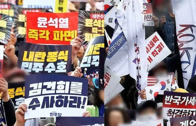 <앵커>이번주말이윤석열탄핵심판선고전마지막주말이될것이라는관측이나오면서탄핵을찬성하고또반대하는목소리도더높아졌습니다.서울도심은오늘(15일)도탄핵찬반,이렇게두쪽으로나뉘었습니다.집회참가자들의발언은더거칠어졌고,현장의긴장도고조됐습니다.첫소식김민준기자가전하겠습니다.<기자>탄핵반대를외치는전광훈목사가주도하는대한민국바로세우기운동본부가개최한서울광화문주말집회.탄핵심판선고전마지막주말집회가될것이라면서발언수위를높였습니다.[전광훈/사랑제일교회목사:윤석열대통령은다음주에반드시돌아올것입니다.국민저항권을발동하여,첫번째로공수처해산해야돼요.부정선거한중앙선관위해체하기원하시면'두손들고만세!']김용현전국방장관자필편지를사회자가대독하기도했습니다.[사회자:악의무리들이저지른불법거짓행각들이하나씩밝혀지면서자유대한민국체제전복을획책한내란범들이누구인지(드러나고있습니다.)]서울안국역인근에서는대통령파면을촉구하는윤석열즉각퇴진·사회대개혁비상행동이15차범시민대행진을개최했습니다.비상행동은특히탄핵심판선고를앞둔오늘집회를'100만시민총집중의날'로선언하고막판세결집에집중했습니다.[서영원/서울시동대문구:탄핵이늦어지면서마음도때로는좀불안한감도있어서정말파면에이르는그순간까지(집회에참여하고싶습니다.)][신계령/경기도용인시:사람들을보니까좀울컥하는마음이생기고모두가같은마음이구나하는마음에위로받는마음도생기더라고요.]서울을지로입구역에서민주노총이주최한'전국노동자대회'와,종각역과명동근처등서울도심곳곳에서는건설산업연맹과공공운수노조,금속노조집회등이각각주도한윤대통령탄핵촉구집회들이열렸습니다.오후늦게부터는윤대통령국민변호인단이헌재앞에서집회를이어가고있고,탄핵을찬성하는비상행동측은헌재근처안국역대로변일대를행진했습니다.경찰은서울도심전역에기동대60여개부대,경력3천600여명을동원해집회시위관리에나섰고,양측간충돌은없었습니다.(영상취재:신동환·윤형,영상편집:신세은)김민준기자[email protected]©CopyrightⓒSBS.Allrightsreserved.무단전재,재배포및AI학습이용금지