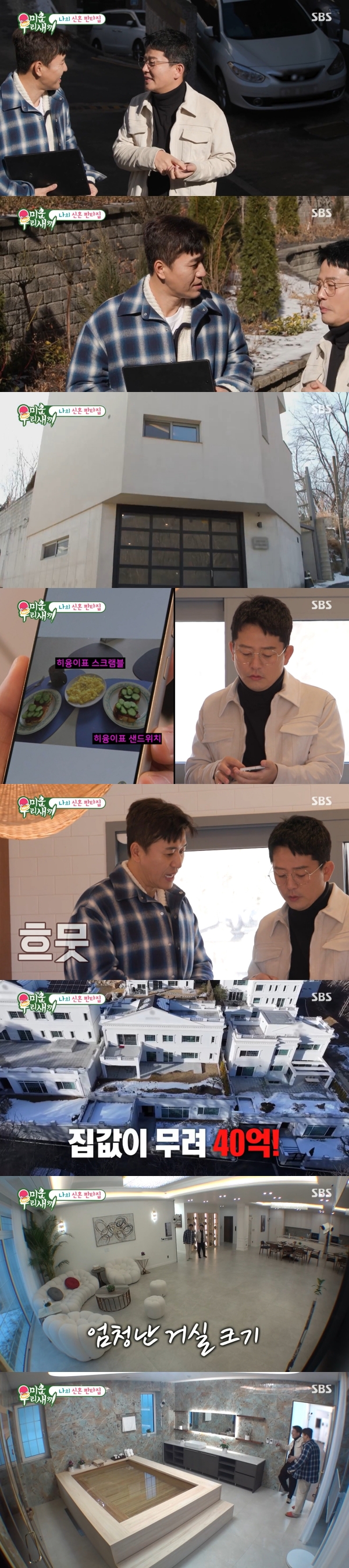사진=SBS[스포츠투데이김태형기자]김종민,김준호가신혼집임장에나섰다.9일방송된SBS'미운우리새끼'에는성훈이스페셜MC로함께한가운데,예비신랑김종민,김준호가신혼집임장에나선모습이그려졌다.김종민은4월20일결혼,김준호는7월13일결혼을앞두고있지만,아직신혼집을구하지못했다고고백했다.이들은홍은동으로신혼집임장에나섰다.김종민은"바로옆이북한산이다.운동할수있는곳도있다"고설명했다.이어김준호에게"내가형과같이온게형이경험이많지않나.이런(결혼관련)경험들"이라고말했다.김준호는"내가무슨경험이있냐.다지워졌다니까"라며"나는아예모른다.부동산관련해서는김지민이잘안다.지민이가(신혼집을)많이알아보고있어서내가미안하다"라고털어놨다.스튜디오에서지켜보던신동엽은"여기지민이어머님나와계신다"고해웃음을자아냈다.김준호는김종민에게"너보면서나도좀봐야겠다.너만결혼하냐.난결혼안하냐"고속내를드러냈다.이에김종민은"왜따라하냐.여긴내가볼집이다"라고발끈했다.김준호는"같이보러왔다.둘다마음에들면먼저계약하는사람거다"라고강조했다.김종민은먼저예비신부가보낸'집구하기체크리스트'를검토했다.신동엽은"예비신부가사업하시는분이라그런지더꼼꼼한것같다"고반응했다.또한예비신부의요리솜씨를자랑하며"유학도했다"고자랑했다.하지만예비신부가힘들까봐결혼하면시켜먹으려한다고덧붙였다.이후두사람은경기도용인의40억원대초호화저택으로향했다.이곳은넷플릭스'더글로리'에서전재준이살던동네라고해눈길을끌었다.해당저택은4층규모에30평남짓한주차장을갖추고있었다.또한내부는목소리가울릴정도로넓었고,샹들리에,명품가구,럭셔리주방을자랑했다.냉장고만7개가있었다.또한집에는엘리베이터와히노키탕까지있었다.두사람은결혼직후바로혼인신고를할것이라고밝혔다.김준호는"나는더이상갈데가없다.너도마찬가지아니냐"며웃었고,김종민도"어떻게찾았는데"라며웃었다.두사람은"마지막사랑이다"라고맞장구쳤다.[스포츠투데이김태형기자[email protected]]Copyright©스포츠투데이.무단전재및재배포금지.