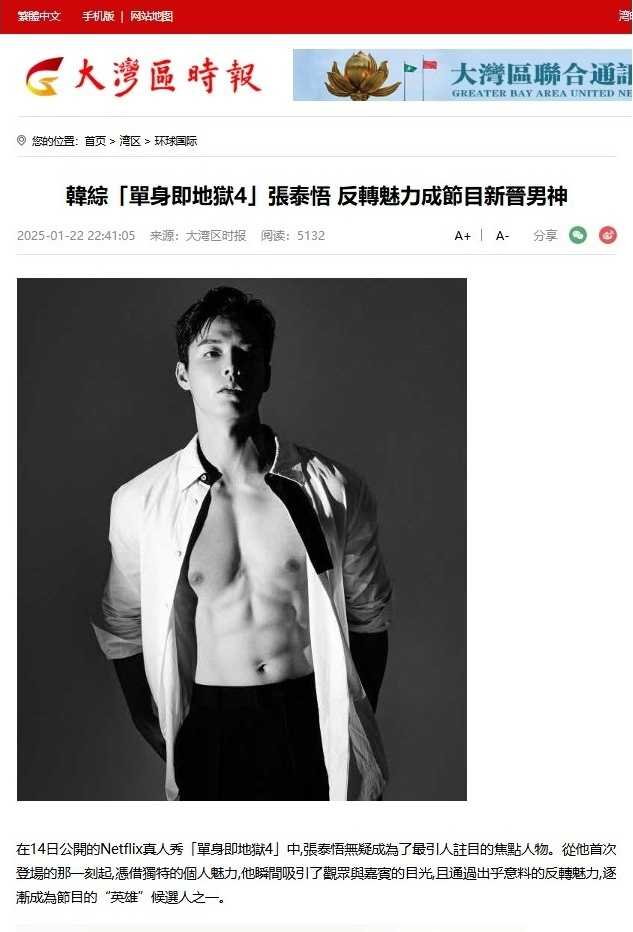 '솔로지옥4'장태오,독보적매력'대만'에서도'훈풍'(사진:대만온라인뉴스'대만구시보'뉴스캡처)넷플릭스시리즈'솔로지옥4'에출연하며출구없는매력을발산하고있는배우장태오가대만온라인뉴스'대만구시보'등에보도되며,그의인기를실감케하고있다.장태오가출연중인넷플릭스시리즈'솔로지옥4'는리얼연예예능프로그램으로2~30대청춘남녀들의미묘한연애심리를담고있다.이에남성출연자로출연중인장태오는조각같은비주얼로첫등장부터눈길을끌었다.이후방송에서장태오는기존의출연자들에게서보지못한이색적인캐릭터로화제가됐다.초반에는'YO!','기선제압!'등독창적인표현을즐기는개그캐릭터로독보적인존재감을드러내는가하면,여성출연자인이시안에게거침없이직진하는'상남자플러팅'을선보이며화제가되기도했다.언뜻가볍고장난기넘치는소년같은면모는그의트레이드마크다.이후한사람에게몰입하는해바라기같은모습이나,상대방을헤아리고배려하는속깊은모습은뭇여성들의가슴을설레게했다.특히진지한남자의반전매력은예상치못한그의새로운면모로글로벌시청자들의이목을집중시키고있다.장태오는2021년KBS일일드라마'비밀의남자'에서한유명역,2022년KBS대하드라마'태종이방원'에서이제역을소화하며안정적인연기력을선보인바있다.이후활동명을장태훈에서장태오로바꾸며새로운도약을알렸으며,미국을비롯해홍콩에서모델과연기활동을병행하며아시아전역에서활발히활동중이다.최근에는말레이시아영화'OPPA'에출연하며글로벌배우로자리매김할준비를탄탄히다져왔다.특히이번대만외신들의관심은장태오가앞으로아시아를비롯한해외각지에서더욱다양한활동을할수있는가능성을한번더확인할수있는기회로여겨진다.한편,장태오가출연중인'솔로지옥4'는현재넷플릭스를통해전세계에방영되고있다.김도윤기자[email protected]뉴스연예팀기사제보[email protected]©bnt뉴스.무단전재,재배포및AI데이터활용금지