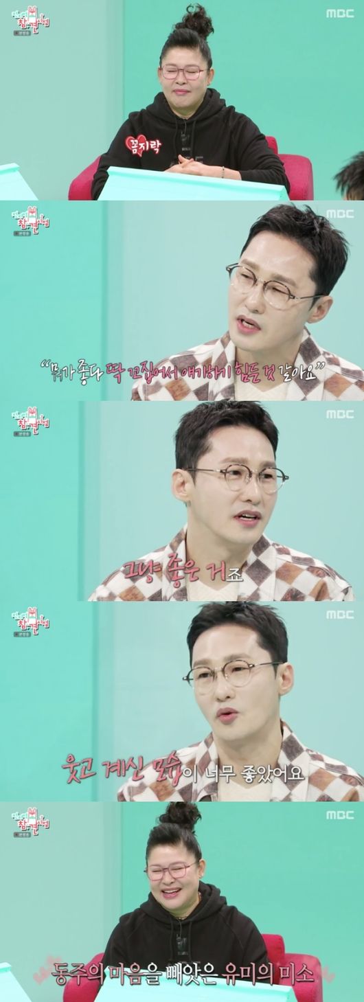 (엑스포츠뉴스김보민기자)황동주가'전참시'촬영전이영자의대기실에서나왔음이밝혀졌다.22일방송된MBC'전지적참견시점'(이하'전참시')에는KBSJoy,KBS2TV'오래된만남추구'(이하'오만추')에서이영자와최종커플로맺어진황동주가출연했다.전현무는"그동안본모습중가장발그레한얼굴"이다라며평소와다른이영자를언급했다.이어'유미의남자'라며소개된황동주는"유미씨만나러'전참시'찾아온황동주다"라고자신을소개해스튜디오를술렁이게했다.양세형은"이영자선배님대기실에서황동주씨가나오더라"라며촬영전황동주의이영자대기실방문을폭로했다.이에이영자는"선물을가셔오셨다"며황동주의방문이유를밝혔고,패널들은선물의정체에관심을가졌다.선물이공개되기전,홍현희는"오늘이화이트데이다"라며호들갑을떨었고,이영자는화이트데이선물이맞음을고백했다.황동주의선물은다름아닌공진단이라고.홍현희가사탕이아닌공진단에의아해하자황동주는"건강하셔야오래오래만난다"며플러팅과함께선물이유를밝혀보는이들을설레게했다.사진=MBC방송화면김보민기자[email protected]©엑스포츠뉴스.무단전재및재배포금지.