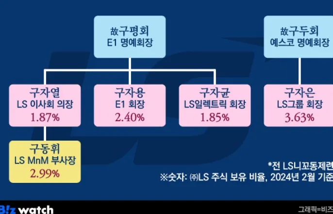 LS지분3%대산호반"단순투자"라지만지분3%확보로회계장부열람등가능44명특수관계인이소유한LS지배구조관심호반그룹이㈜LS지분일부를사들인것으로알려지면서LS지배구조가주목받고있다.2003년LG그룹에서독립한LS는구자열이사회의장과그의친인척43명이지분32%가량을나눠가진구씨일가집단지배체제다.자사주등을포함하면안정적인경영권을유지하고있지만,강력한일인체제의지분이없는LS의특이한지배구조를호반이파고들었다는분석이나온다.13일업계에따르면호반그룹은최근LS지분일부를매수한것으로알려졌다.지분은5%미만으로아직공시되지않았고,업계에선3%대로관측하고있다.호반측은"단순투자"라는입장이지만,업계의시선은다르다.지분3%를보유하면△주주총회소집권△주주제안권△회계장부열람권△이사해임청구권등을행사할수있다.업계에선호반이LS의회계장부를노린것이란분석도나온다.호반그룹의대한전선과LS그룹의LS전선은특허소송을벌이고있다.13일2심에서도대한전선은LS전선에패소했다.두그룹이소송으로껄끄러운가운데호반이전격적으로LS지분을사들인것이다.호반의예상치못한지분인수는이번이처음이아니다.2022년호반건설은대한항공의최대주주인한진칼지분17.43%를6839억원에인수했다.당시도호반측은"단순투자"라고했지만,한진칼이사모투자펀드와경영권분쟁을벌이고있다는점에서다른의도가숨어있을것이란관측이나왔다.호반건설등은작년6월기준한진칼지분17.82%를여전히보유하고있다.한진칼의지배구조를보면조원태회장등특수관계인이보통주20.65%를갖고있다.이중조원태회장의지분은5.78%에머물고,나머지는그의동생인조현민한진사장(5.73%)등이보유하고있다.델타항공12.9%,산업은행10.58%등우호지분이있지만강력한지배구조를갖고있다고보기는어렵다.작년12월기준LS주주를보면구자열의장1.87%등44명의특수관계인과1개의공익재단이지분32.15%를갖고있다.개인최대주주는구의장의사촌인구자은회장(3.63%)이다.0%대지분을가진특수관계인만34명에이른다.LG구인회창업주의남동생3명이9년씩번갈아가며그룹을이끌었고,그3형제의자녀들이다시경영권을이어받으면서지분이쪼개졌다.지배구조가쪼개져있지만경영권이불안정한것은아니다.그간탈없이형제경영을이어왔을뿐아니라LS가자사주15%(485만2462주)도보유하고있다.자사주는의결권이없지만경영권분쟁등상황에선제3자에게넘겨의결권을되살려우호지분으로활용할수있다.자사주와최대주주보유지분을제외하면시장에52%가량주식이풀려있는것이다.LS경영성과도탄탄하다.LS는지난해사상최대매출27조5447억원과영업이익1조733억원을냈다.첫영업이익1조돌파다.원동력은핵심계열사인LS전선과LS일렉트릭등이역대급실적을낸덕분이다.업계의관심은호반이앞으로추가적으로LS지분을인수할것인지다.추가로지분을인수하게되면회계장부열람이아닌다른목적이숨어있다고볼수있기때문이다.아래는작년12월기준LS지분구조.△구자열1.87%△구근희0.65%△이준범0.02%△LEEMIMIMIYOUNG0.29%△이지현0.29%△이재우0.08%△구혜정0.6%△이인정0.82%△이대현0.05%△이상현0.05%△구자엽1.46%△구은희0.54%△구본규1.16%△구본혁1.27%△구윤희0.81%△구자철1.94%△구원희0.46%△구본권0.39%△KOOEUNAH0.69%△구동휘2.99%△구은성0.69%△구자용2.4%△KOOHEENA0.58%△구희연0.58%△구자균1.85%△구소연0.81%△구소희0.81%△구혜원1.63%△구은정0.77%△구자은3.63%△구원경0.5%△KOOJAEHEE0.09%△이윤결0.04%△구민기0.5%△정유정0.05%△김지선0.03%△김국선0.03%△김태익0.03%△이승아0.06%△이소현0.06%△이신행0.06%△이주현0.06%△구소영0.08%△구다영0.08%△재단법인송강재단0.3%안준형([email protected])ⓒ비즈니스워치의소중한저작물입니다.무단전재와재배포를금합니다.Copyright©비즈워치.무단전재및재배포금지.