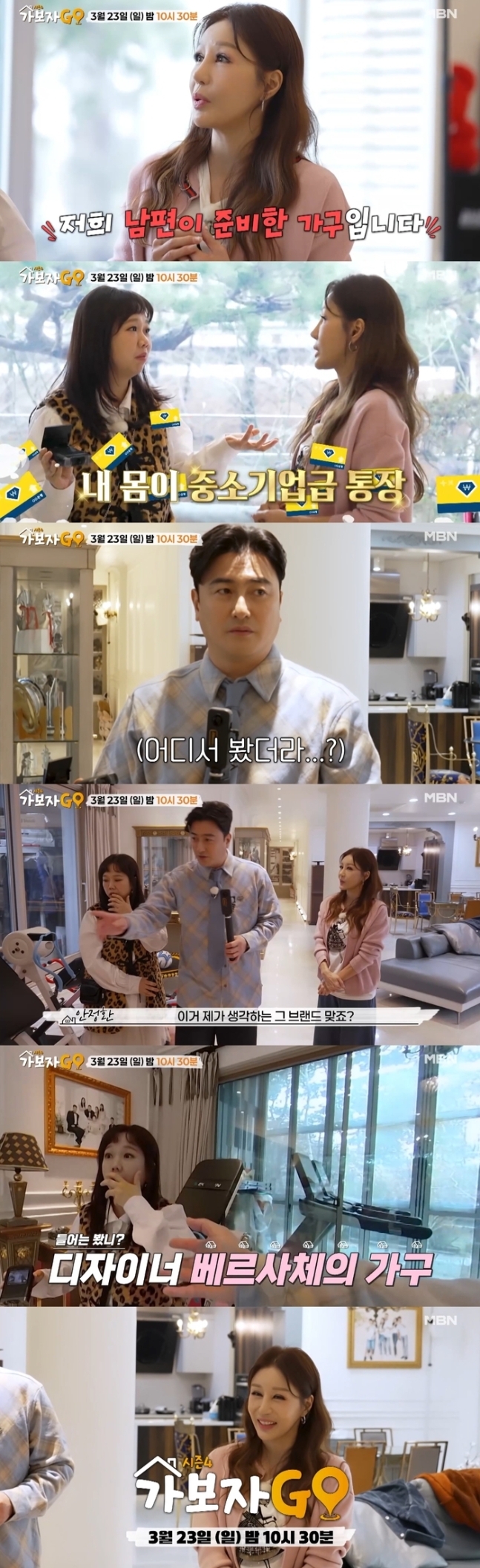 ‘가보자GO4.사진ㅣMBN‘가보자GO4(가보자고)’에트로트여왕김혜연이출연한다.오는23일방송되는MBN‘가보자GO4(가보자고)’7회선공개영상에는트로트의여왕김혜연이등장,‘퀸’다운압도적인크기와화려한가구들로가득찬강남88평하우스를공개해눈길을사로잡는다.김혜연의집으로간MC안정환과홍현희는런웨이급복도를보며감탄하고,복도를지나나타난웅장하고화려한거실을보며“대식구들이모두모일수있는공간이있는게부럽다”라고또한번감탄했다.이어거실곳곳의고풍스러운가구들에감탄하던MC들에게김혜연은“혼수로들여놓은가구다.내가가져온건아니고,남편이나를맞이하며준비한가구다”라며“여자들이보통혼수로가구를가져오는데,나는통장을가져왔다.내몸이중소기업이다”라고말해모두를감탄하게했다.거실가구를계속지켜보던안정환은김혜연에게“이거내가생각하는그세계적인명품브랜드맞나?V사?”라고물었고,김혜연은웃으며“맞다”라고답해입이떡벌어지는명품가구들의연이은등장에다른공간의가구들에대한궁금증을높였다.Copyright©스타투데이.무단전재,재배포및AI학습이용금지