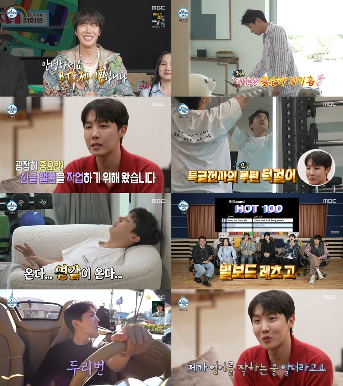 ‘나혼자산다’.사진IMBC‘나혼자산다’방송캡처그룹방탄소년단제이홉이비밀을털어놨다.28일방송된MBC‘나혼자산다’에서는제이홉의미국로스앤젤레스일상이그려졌다.이날전현무는제이홉편예고공개후쏟아진뜨거운반응을언급했다.제이홉은“너무기대할까봐”라며걱정했다.기안84는“너무기대된다.월클은잠을어떻게잘까.이를어떻게닦을까”라고해웃음을자아냈다.이후제이홉의일상이공개됐다.잠에서깬제이홉은기어서이불에서탈출,스트레칭으로하루를시작했다.기안84가“머리눌린것도멋있다.머리가어떻게저렇게눌리냐”고하자전현무는“저스타일로미용실에서해달라고할거다”라고너스레를떨었다.제이홉은싱글앨범작업을위해미국로스앤젤레스에왔다고했다.군대전역전부터세웠던계획이라고.제이홉은“이때까지음악작업을하면서내가하고싶은음악을많이보여준것같다.미국에와서다양한문화를경험하면서소중한나의영감들을놓치지않고음악을만들어보자는생각이들었다”고말했다.이어제이홉이머무는로스앤젤레스집이공개됐다.널찍한침실과주방,웨이트룸,마당등은무지개회원들의눈길을끌었다.운동을마친제이홉은오픈카를타고햄버거가게로향했다.첫드라이브스루주문에도전한제이홉은연습한대로주문을마쳤으나드라이브스루를나선후“뭐라는거지.기다리라는건가”라고해모두를폭소케했다.제이홉은“사실많은사람이내가영어를잘하는줄안다”며“보통RM이영어를많이하고나는옆에서리액션을한다”고털어놨다.이어“영어라는게피할수없다면즐겨야하는것같다.되든안되든아는단어다뱉는거다.문법맞든안맞든.그냥막뱉는것같다.거기에서역질문이오면예스예스하는거고알아듣는단어가있으면거기에대한답을하는거다”라고말했다.[이세빈스타투데이객원기자]Copyright©스타투데이.무단전재,재배포및AI학습이용금지