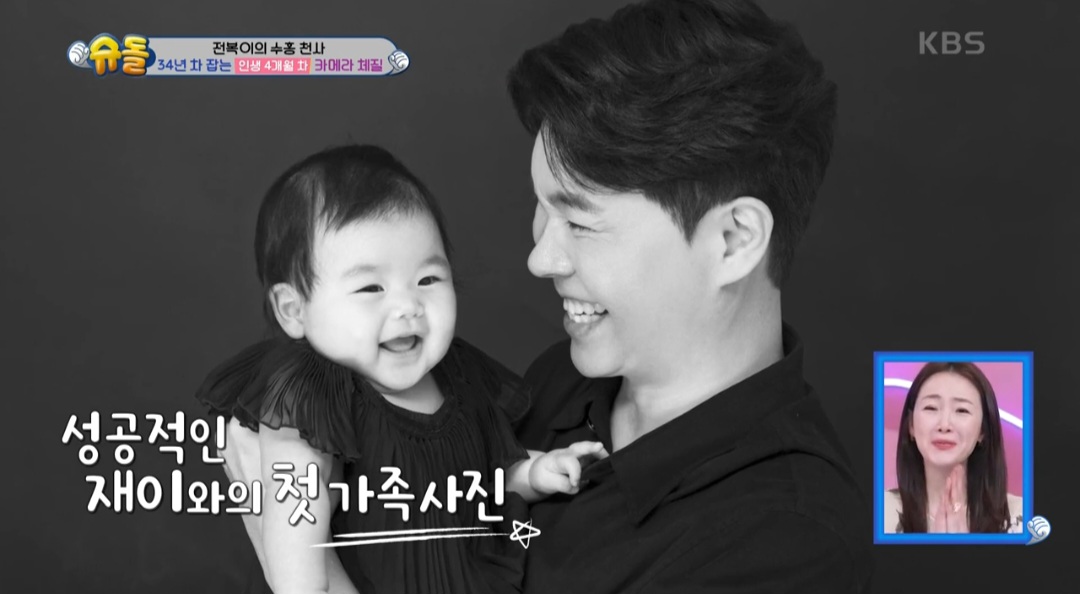 박수홍의딸재이가‘아이돌센터급’활약을펼쳤다.iMBC연예뉴스사진iMBC연예뉴스사진12일(수)방송된KBS예능프로그램‘슈퍼맨이돌아왔다’(약칭‘슈돌’)564회는‘오로지너만의슈퍼맨’편으로3MC박수홍,최지우,안영미와슈퍼맨오종혁,박수홍이함께했다.이날박수홍,김다예부부는4개월된딸재이와함께생애첫가족사진촬영에나섰다.재이는자연스럽게카메라렌즈를응시하며생글생글한‘요정미소’를지었다.특히시크한블랙드레스를입은재이는혀를살짝내미는깜찍한표정으로사랑스러움을뽐내사진작가의극찬을이끌어냈다.iMBC연예뉴스사진iMBC연예뉴스사진지켜보던최지우는“재이야,아이돌센터야?”라며감탄을터트렸다.박수홍은현장에서딸이제일촬영을잘했다며“사진작가님이촬영평생하시면서지금까지촬영한아이중재이가1등이라고했다”라며자랑했다.한편,육아프로그램‘슈퍼맨이돌아왔다’는매주수요일오후8시30분에방송된다.iMBC연예김혜영|사진출처KBSCopyright©MBC연예.무단전재및재배포,AI학습금지.