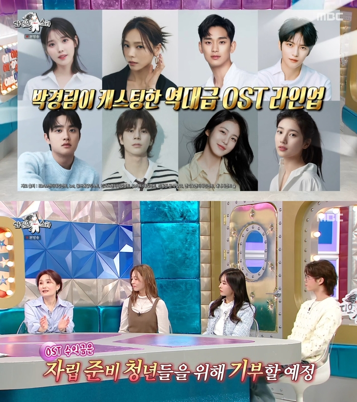 ‘라디오스타’.사진IMBC‘라디오스타’방송캡처방송인박경림이뮤지컬‘드림하이’OST에배우김수현이참여했다고밝혔다.12일방송된MBC‘라디오스타’에는박경림,선예,하원미,정동원이게스트로출연했다.이날박경림은뮤지컬‘드림하이’에크리에이티브디렉터로참여하게됐다며“이작품이한국창작뮤지컬이다.2년전초연때제작발표회를진행하며이작품이왜만들어졌는지들었다.댄스아카데미를운영하던원장님이코로나19가터지며댄서들이설무대가줄어들자원없이설무대를만들어주기위해만든공연이라고하더라”라고말했다.박경림은“크리에이티브디렉터로서작품의모든것에관여한다.캐스팅,마케팅,홍보,대본수정도한다”고말했다.이어“뮤지컬OST도드라마나영화처럼만들자고했다.드라마‘드림하이’에출연한아이유에게OST를부탁했다.OST수익금은자립준비청년들을위해기부할예정이다.선예,김수현,김재중,도경수,정동원,신예은,수지등과함께OST가완성되고있다”고해눈길을끌었다.박경림은“꿈을응원하는마음으로만든공연이라잘되길바라는마음으로훨씬더업그레이드될것이다”라고덧붙였다.한편‘라디오스타’는매주수요일오후10시30분방송된다.[이세빈스타투데이객원기자]Copyright©스타투데이.무단전재,재배포및AI학습이용금지
