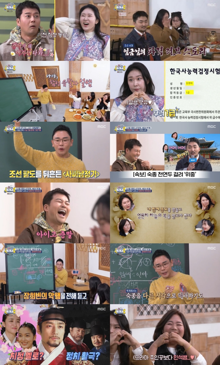 '선을넘는클래스'설민석이조선판'결혼지옥'숙종과여인들의이야기로엄마들의과몰입반응을이끌어냈다.iMBC연예뉴스사진3월12일방송된MBC'선을넘는클래스'(기획정윤정/연출한승훈변다희/작가김수지)에서는설민석,전현무,유병재가'자유부인DAY'를맞은엄마들에게출장역사강의를하는모습이그려졌다.치정멜로와정치활극을넘나드는숙종과여인들의이야기에엄마들은“웬만한드라마보다더재밌다”라는반응을쏟아냈다.이에채널경쟁력과화제성을가늠하는핵심지표2049시청률은1.1%를나타내며,자체최고기록을경신했다.(닐슨코리아수도권기준)이날강의를신청한'자유부인DAY'모임의주체자는KBS공채개그맨출신김경아였다.김경아는끈끈한우정을자랑하는'찐친'엄마들과함께역사강의를듣고싶다고했다.자녀를키우면서한국사능력검정시험1급을취득한'역사러버'김경아의학구열도감탄을자아냈다.설민석은먼저수능필독서이자조선팔도를뒤흔든베스트셀러고전소설'사씨남정기'를들려줬다.사씨가첩교씨의음모로인해남편에게쫓겨나온갖역경을딛고집으로복귀하는내용의이야기였다.엄마들은예상을깨는파격적인전개에마치드라마를보듯과몰입한반응을쏟아냈다.전현무와유병재는엄마들의미친텐션에적응하지못한채리액션이고장난모습을보여웃음을자아냈다.이런가운데설민석은“'사씨남정기'가단순히재미만있어서베스트셀러였던게아니다.당시재위중이었던왕의사생활과비슷한점이있어서다”라고말하며,'사씨남정기'와묘하게닮은숙종과장희빈,인현왕후의이야기를이어갔다.엄마들은'사씨남정기'와비슷하게흘러가는숙종과여인들의관계변화에흥미진진해했다.전현무는인현왕후를폐위시킨숙종이후궁장희빈을왕비로앉히면서쓴기록을읽었다.이에과몰입한엄마들은전현무를마치숙종보듯바라보며“참나”“아이고”탄식을했고,전현무는“나를너무경멸의눈빛으로보신다”라고움찔해모두를폭소케했다.설민석은조선왕조실록을바탕으로숙종과인현왕후,장희빈의관계를재미있게풀어내며엄마들의과몰입을이어갔다.여기에숙종을향한다른관점도제시해관심을모았다.설민석은“여인들의치마폭에휘둘린왕이아니라,숙종이왕권강화를위해여인들을이용했다는시선도있다”라면서,남인과서인의세력다툼속그들을견제하기위해두여인을오간숙종의정치적메시지를이야기했다.치정멜로에정치활극까지다양하게해석되는'숙종과여인들'의이야기가잠시도눈과귀를뗄수없게했다.엄마들은“이렇게같이들으니까귀에쏙쏙들어온다”라며고전소설과모티브가됐다고알려진역사이야기에푹빠진반응을보였다.설민석은“자극적인콘텐츠들이많지만,우리고전소설도많이사랑해달라.우리역사가웬만한드라마보다훨씬유익하고재밌다”라며강의를마무리했다.드라마남자주인공보다설민석에환호하는엄마들의모습이마지막까지웃음을안겼다.한편MBC'선을넘는클래스'는의외의장소에서펼쳐지는출장역사강의프로그램으로,매주수요일밤9시방송된다.iMBC연예유정민|사진출처MBCCopyright©MBC연예.무단전재및재배포,AI학습금지.
