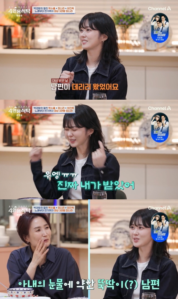 사진=채널A[스포츠투데이김태형기자]배우겸가수장나라가남편과의러브스토리를공개했다.24일방송된채널A'절친토큐멘터리-4인용식탁'에는박경림이53세에늦깎이아빠가된박수홍,지난해연기대상을수상한장나라,데뷔20년만에첫뮤지컬에도전한최진혁을초대한모습이그려졌다.이날장나라는'SBS연기대상'에서대상을받았을때를떠올렸다.그는"대상을받고난후에도현실감이너무없었다"며"대상받은날남편이데리러왔다.그런데남편과둘이있으니까눈물이터졌다.남편이제가울면어쩔줄몰라한다.남편이어색하게달래주던게생각난다"고말했다.이어"대상은항상남의것이라고생각했기때문에'내가왜대상이지?'라고생각했다.2002년에가요대상을받았을때도귀여운여동생이미지여가수가없다가좋게봐주셔서감사하게잘맞아떨어졌다고생각했다.엄청난행운이라고생각했다"며겸손함을보였다.사진=채널A또한장나라는남편과의결혼생활에대해"너무즐겁게살고있다.좋아"라며행복한미소를지었다.최진혁이"누나는원래아예결혼생각이없다고했었다"고하자,장나라는"제가30대후반에진혁이랑같이드라마'황후의품격'을했는데그때당시는결혼생각이없었다"고밝혔다.박수홍이"그런데어떻게하다가?"라고물었고,장나라는"가려니까가게되더라"라고답했다.박경림은"심지어나라가먼저고백했다"며"나라가그럴거라고상상도못했다"고말했다.이에장나라는"내가먼저눈에들어왔으니까.('VIP')촬영이점점진행되면서'저사람정말성실하다.일잘한다.빠릿빠릿하다'그런게보이더라.원래도내가생각하는기준이일을얼마나잘하는가,진정성있는가다.그게직업의종류와상관없이이성을보는척도였다.어느날갑자기눈에들어오더라"라고밝혔다.어떻게고백했는지묻자"관심은있지만촬영이끝날때까지못했다.계속보기만했다"며"회사에서가끔개인스틸컷을찍는데같이찍힌사진보내드리면서안부메시지를보냈다.우리사이가좋아서감독님들연락처는다알고있었다.그런데오히려내가마음이있으니까약간소극적이고문자도형식적으로하게되더라"라고답했다.이어"나중에'잘끝났다''수고하셨다'서로그런얘기를하다가(남편이)'좋은누나,형들만나서잘했다.너무좋은분같다'하길래'좋은'이나오길래바로잡았다.저는'감독님참좋아해요'했는데남편이'저도참좋아합니다'라고하더라.못알아들었나싶어서'동료말고남자로서얘기한건데요?'했더니말이없더라.의외의이야기를들으니까약간띠용했나보더라.생각좀해보고그다음부터만나서이야기도나누면서관계가급발전했다"고밝혔다.이에박경림은"만나서느낀건일이랑나라밖에모른다"라고덧붙였다.장나라는"사실그쪽이마음에든다는얘기를꺼내기가쉽지않았다.처음에시부모님들뵙기가어려웠다.하지만두분다쿨하신분들이었다.특히어머님이시원시원하신성격이어서엄청편했다"고전했다.남편과취미와성향이잘맞는지묻자"성격은조금다른데성향이굉장히비슷하다.쉴때잘맞는다.첫번째결혼기념일에전날에는차타고명동도가고계획을다세웠는데다음날일어나서는소파에같이늘어져있었다.비가막오는데눈이마주치니까'야너두?'했다"며웃었다.한편장나라는6살연하정하철촬영감독과2년열애끝에지난2022년결혼했다.두사람은지난2019년방송된SBS드라마'VIP'에서만나인연을쌓았다.[스포츠투데이김태형기자[email protected]]Copyright©스포츠투데이.무단전재및재배포금지.