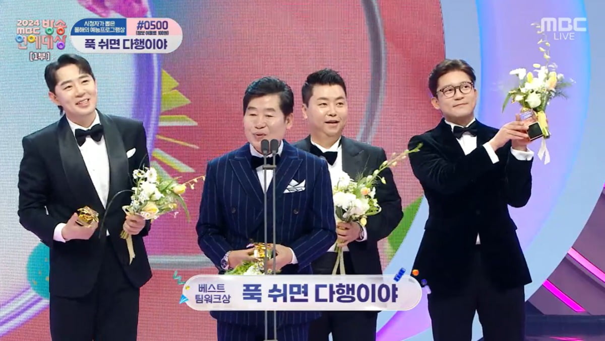 [텐아시아=이소정기자]사진=MBC캡처배우김석훈이'2024MBC방송연예대상'에서핫이슈상을받으며소감을밝혔다.28일오후'2024MBC방송연예대상'이상암MBC미디어센터공개홀에서생방송으로진행됐다.이번행사는전현무,윤은혜,이장우가공동진행을맡았다.당초방송은지난달29일열릴예정이었으나,당일오전발생한무안국제공항제주항공여객기참사로인해애도의뜻을표하며일정이연기됐다.MC로예정됐던혜리가일정변경으로불참하게되면서,윤은혜가빈자리를대신했다.사진=MBC캡처무대에오른김석훈은"예능에출연하는것도어색한데,시상식에초대받고상까지받았다.이세상은참놀라운것같다.전혀예상하지못했던방향으로흘러가는것이인생같다"며"한번도상상하거나계획하지않았는데이렇게상을주셔서감사드린다"고소감을밝혔다.이어"'놀면뭐하니?'를촬영하며정말행복하고즐거웠다.제작진과출연진모두가족처럼따뜻하게대해줘서편하게이야기할수있었다.지금같은시기일수록웃음이더욱필요한것같다.새해에는더많이행복한2025년이되길바란다"고덧붙였다.이소정텐아시아기자[email protected]©텐아시아.무단전재및재배포금지.