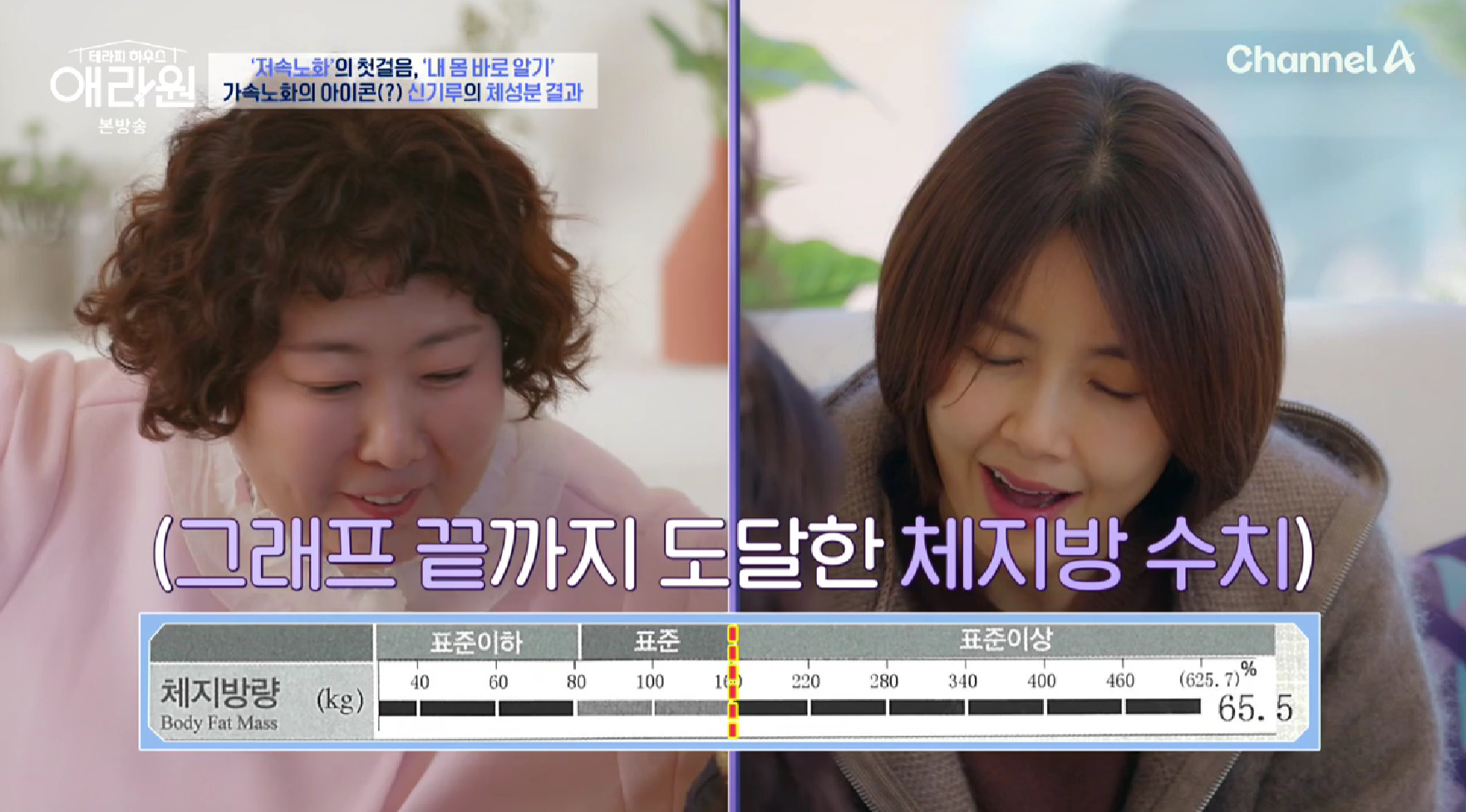 (엑스포츠뉴스윤현지기자)신기루의놀라운체지방량이공개됐다.28일방송된채널A'테라피하우스애라원'에는홍현희와이현이에이어신기루가크루로합류했다.신기루는"인사하고뭐좀먹어야하는거아니냐.다과도없고"라고불평하자신애라는"여기서제일금해야하는게다과다"라고이야기했다.이현이는"여기단식원이냐"라고너스레를떨었다.이어신애라는"기루씨가제일걱정이됐다"라며"몇시부터몇시까지먹냐"라고돌직구를날렸다.신기루는"저는사실소식한다"라며"음식에대한애정이강해서일을할때는중간에는웬만하면안먹고끝나고먹으려고저녁에오래먹는다"라고이야기했다.신애라는"그래서우리가1박2일을준비한거다"라며야식,폭식을원천차단하겠다고밝혔다.홍현희는"저녁7시부터새벽2시까지먹는다"라고신기루의식습관을증언했다.그러면서"저는조금씩자주먹는편이다"라고설명했다.이현이는"저는군것질을안먹는편이고,삼시세끼는꼭챙겨먹는다"라고말했다.신애라는"사실나는채소안먹고탄수화물중독처럼먹었다.45세가되면서몸이예전같지않다고느꼈다.50세가되니까'이거뭐지?'싶었다.55세가되면서"라고이야기하자크루들은신애라의나이에놀라워했다.신기루와신애라가띠동갑임이드러나자신애라는"이제슬슬힘들때되지않았냐"라고물었고"사실애라원에들어오라고했을때무조건안한다고했다.일하면서스트레스받기가너무싫은거다"라고이야기했다.그는하루동안700보밖에걷지않았다며"서있는것이운동이다"라고이야기하기도."생각해보니까체력이안된다는생각이들었다.조금이라도습관을바꿔야겠다는생각은있지만설득하는사람도없으니까편하게있었던것같다"라고포기하게된이유를밝혔다.이후신애라와크루들은체성분분석에나섰다.이현이는체지방량10kg,골격근량25.6kg으로이상적인모습을보였다.신애라는다소낮은골격근량으로갱년기이후근육량이줄었다고털어놨다.충격을자아낸것은신기루의체지방량.신기루는"에러아니냐"라며현실을믿지못했다.그는체지방량이65kg이나와그래프가끝까지솟았다.그러나골격근량도33kg으로엄청난근육량을보여주기도했다.사진=채널A윤현지기자[email protected]©엑스포츠뉴스.무단전재및재배포금지.