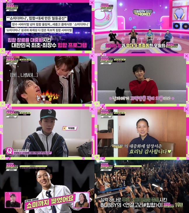 제공:CJENM역대‘쇼미더머니’최고의무대순위가공개됐다.지난20일방송된‘Mnet30주년차트쇼’4화에서는글로벌시청자가뽑은‘쇼미더머니’역대레전드무대순위가공개됐다.1위는‘쇼미더머니3’세미파이널에서선보인바비의‘연결고리#힙합’이었다.당시바비는폭발적인에너지와강렬한래핑으로심사위원과관객을사로잡으며최종우승까지차지했다.출처:바비인스타그램이어서2위는‘힙합은안멋져’로‘쇼미더머니’와힙합씬에도전장을내민이찬혁의‘불협화음’무대,3위는‘쇼미더머니’시리즈최초의여성우승자타이틀을거머쥔이영지의‘NOTSORRY’무대가선정됐다.이날방송에는‘쇼미더머니’주요명장면은물론비하인드스토리공개와화제를모았던출연진들도깜짝등장했다.그중‘쇼미더머니5’에재도전하는서출구에게곱지않은시선을보내며화제를모았던스트레이키즈(StrayKids)창빈의데뷔전모습이재조명됐다.방송에출연한창빈은2025년버전‘곱지않은시선’을재현해특별한재미를선사했다.또코드쿤스트는‘쇼미더머니10’1차예선에서뜨거운마음을전하며‘엔젤좌’로불렸던참가자에대해진심이느껴졌다고언급하며,최근‘커플팰리스2’에서똑같이‘엔젤좌’를외치는것을봤다고이야기를전했다.당시를회상한코드쿤스트는“살면서처음남자에게고백을받아봤다.언제시간이되면만나서이런저런이야기나눠보고싶다”고전해웃음을자아냈다.박재범은‘쇼미더머니6’프로듀서군단의싸이퍼무대소감을털어놓았다.타이거JK,Bizzy,다이나믹듀오,박재범,지코,딘등힙합씬을대표하는아티스트들이한데모여선보인싸이퍼는공식유튜브영상조회수2700만회를넘으며폭발적인인기를끌었다.이에대해박재범은“레전드프로듀서라인업은물론,각자의에너지가모여서화제가된무대였다”고전했다.‘쇼미더머니’에러브콜을보내며시즌1에직접출연했던이효리도방송에등장해“전시즌을한회도빠짐없이봤다”며“남편이상순과방송이끝난후랩으로대화할정도로팬”이라며애정을드러냈다.더불어그는“시즌1당시내가출연하면서대중적으로프로그램이더알려지지않았나싶다”라고덧붙였다.한편오는27일밤9시20분방송되는‘Mnet30주년차트쇼’다음회차에서는‘스트릿우먼파이터’레전드무대를조명할예정이다.이현승기자bnt뉴스연예팀기사제보[email protected]©bnt뉴스.무단전재,재배포및AI데이터활용금지