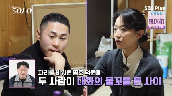 (엑스포츠뉴스김보민기자)영자와영수가첫데이트이후의마음을고백했다.26일방송된SBSPlus·ENA예능'나는솔로'에서는첫데이트후한자리에모인솔로남녀들의모습이그려졌다.영자와데이트를하고온영수는"너무좋았다"며영자를향해커진마음을표현했다.이에솔로녀들은"막내커플이네.막내즈"이라며두사람을엮었고,인터뷰에서영자는"부담됐다.커플결성처럼되진않았다.지금당장은"이라며둘쨋날부터엮어지는분위기에불편한마음을드러냈다.이어영수가"데이트한사람끼리앉으면된다"고하자영자는"그러지마라"고했고,이어영수는계속해서영자의눈치를봤다.영수는인터뷰에서"영자가확신을안준다.나혼자착각하는느낌.나는마음이짙어지고농축된느낌,꾸덕한데영자는데이트전후가똑같다.그렇다고내가조바심을느끼기엔아직둘째날이다.오늘밤엔현숙과순자를알아볼예정"이라며솔직한심정을드러냈다.다른사람과이야기를나눌기회를호시탐탐노리던영수는이내자리를이동했고,영자또한다른솔로남들에게대화를시도했다.사진=SBSPlus,ENA방송화면김보민기자[email protected]©엑스포츠뉴스.무단전재및재배포금지.