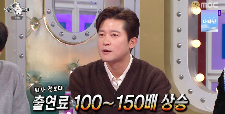 MBC‘라디오스타’캡처MBC‘라디오스타’캡처[뉴스엔서유나기자]아나운서출신방송인김대호가계약금액수를간접적으로전했다.3월26일방송된MBC예능'라디오스타'(이하'라스')907회에는엄홍길,이수근,김대호,더보이즈선우가게스트로출연했다.이날김대호는같은양평출신에초중고등학교동문인이수근이기획사선택에영향을끼쳤냐는질문에"지연때문은아니고제나름대로선택이다.여러가지조건이있었지만믿을만한선배가계신곳으로간것"이라고밝혔다.그는몸값이천정부지로올랐다는소문에"그러려고퇴사한건데요뭐"라고인정,"개인적으로출연료는쉽게말씀드리면편차가있지만100배에서150배사이다.전보다많이올랐다"고자랑했다.김대호는앞서'직장다니며만져볼수없는금액을계약금으로받았다'고한발언에대해선"직장인으로서만져보고힘들고평생볼수없는단위라놀랐지만그렇다고엄청나게많은금액은아닌것같다"면서퇴직금보다계약금액수가크다고밝혔다.중산에퇴직금을정산하지않았다고쳐도계약금이더많다고.이수근은"저는받아보지못한계약금을받았더라"고말해놀라움을자아냈다.현재회사와3년계약했다는김대호는"계약금이세금으로나가는부분이있어서적정수준"이라고덧붙였다.한편김대호는홍익대학교경영학과출신으로지난2011년MBC'우리들의일밤-신입사원'을통해아나운서에최종합격하며공채30기로입사했다.MBC아나운서국차장으로근무하던그는최근14년몸담은MBC에사의를표명하며프리랜서선언을했다.MC몽이이끄는원헌드레드와전속계약을체결했다.최근MBCFM4U'두시의데이트안영미입니다'에출연한김대호는전속계약을체결한이유가계약금이냐고묻자"네니오(네아니오)"라고답하며"계약금을말씀드릴순없지만직장생활을하면서통장에일반적으로찍힐수있는금액은아니다"라고밝혔다.그는원헌드레드행을결정하는데산하레이블빅플래닛메이드엔터소속이수근의조언이있었다고도털어놓았다.뉴스엔서유나stranger77@기사제보및보도자료[email protected]ⓒ뉴스엔.무단전재&재배포금지Copyright©뉴스엔.무단전재및재배포금지.