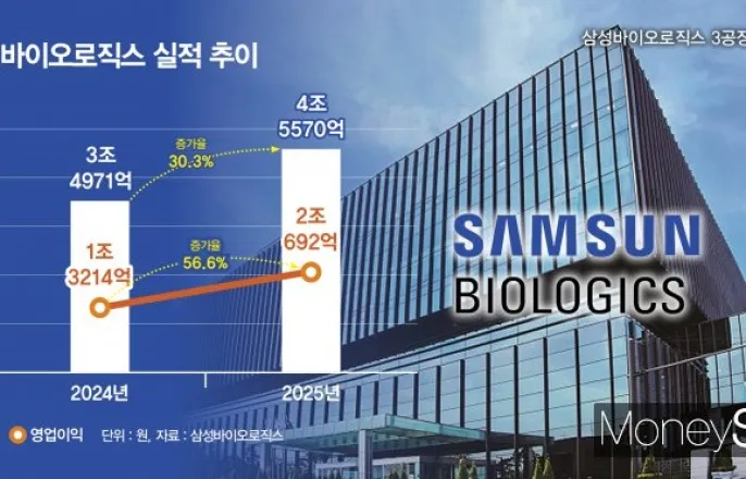 국내제약·바이오회사중최초안정적생산과우호적환율효과순수CDMO확립…"올해매출더오른다"삼성바이오로직스가지난해실적개선에성공했다.사진은삼성바이오로직스실적추이./그래픽=강지호기자바이오시밀러사업을떼어낸삼성바이오로직스가지난해실적개선에성공했다.공장가동률상승과우호적인환율덕분이다.순수CDMO(위탁개발생산)업체로서의경쟁력을강화한삼성바이오로직스는올해에도실적개선을이룰전망이다.삼성바이오로직스는지난해매출4조5570억원,영업이익2조692억원을기록했다고21일공시했다.전년동기대비매출은30.3%,영업이익은56.6%늘었다.국내제약·바이오회사가연간영업이익2조원을넘긴건이번이처음이다.삼성바이오로직스는지난해매출3조4971억원,영업이익1조3214억원을기록한바있다.실적개선배경에는4공장램프업(가동률상승)과1~3공장의안정적인풀가동이자리한다.생산량이늘어날때이익이더빠르게증가하는영업레버리지효과가나타난것.영업레버리지효과는CDMO와같이고정비가큰업종에서주로발생한다.우호적인환율도삼성바이오로직스실적개선에힘을보탰다.CDMO수주계약은달러로이뤄진다.원/달러환율이오를수록원화로기록되는회계상이익이증가하는구조다.지난해연평균원/달러환율은전년(1421.97원)보다4.2%오른1364.38원을기록했다.삼성바이오로직스의지난해연간수주금액은6조8190억원으로역대최대다.삼성바이오로직스는올해추가성장이가능할것으로내다봤다.삼성바이오로직스가제시한올해매출성장전망치는전년대비15~20%다.해당전망치는미국록빌공장인수에따른매출기여분은반영되지않았다.올해매출성장전망치가추가상향될가능성이있다는의미다.미국공장실적이반영된전망치는인수완료이후추가로안내될계획이다.인수완료시점은올1분기로예정됐다.━순수CDMO효과…목표주가'230만원'의견도━사진은삼성바이오로직스4공장./사진=삼성바이오로직스증권가에서는삼성바이오로직스가대규모생산능력을기반으로고성장·고수익CDMO모델을안정적으로정착시켰다는평가가나온다.올해도신규수주확대와가동률상승에따른성장세가이어질것이란의견이지배적이다.권해순유진투자증권연구원은최근리포트를통해"생산능력및포트폴리오확대,글로벌고객사의공급망요구수준에맞춘서비스로대형제약사와의장기계약이지속될전망"이라며"성장성이지속가능하다"고분석했다.주가상승기대감도존재한다.인적분할을통해바이오시밀러자회사삼성바이오에피스와지배구조상분리된만큼CDMO수주가늘어날가능성이있어서다.삼성바이오로직스는지난해11월인적분할로신설회사삼성에피스홀딩스를설립하고삼성바이오에피스를삼성에피스홀딩스자회사로편입시켰다.바이오시밀러회사인삼성바이오에피스로기술이유출될수있다는삼성바이오로직스일부고객사의우려를불식시키기위해서다.삼성바이오로직스시가총액은인적분할발표전인지난해5월22일시가총액74조원에서올해1월20일89조원으로증가했다.삼성바이오로직스단독기준으로분할전시가총액을웃돌았다.올들어공개된국내주요증권사의삼성바이오로직스목표주가는205만~230만원이다.이날종가(187만3000원)와견줬을때9.5~22.8%추가상승여력이있다는분석이다.삼성바이오로직스관계자는"인적분할을성공적으로완수해CDMO사업의본원적경쟁력에더욱집중할수있는지배구조를확립했다"며"이를통해잠재적이해상충우려를해소하는한편순수CDMO체제전환을명확히해기업및주주가치제고에전념할수있는기반을마련했다"고설명했다.김동욱기자[email protected]©머니S&moneys.co.kr,무단전재및재배포금지