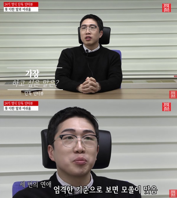 나는솔로24기영식/사진=촌장엔터테인먼트TV[스포츠투데이서지현기자]'나는솔로'24기영식이모태솔로(모솔)임을인정했다.지난달28일유튜브채널촌장엔터테인먼트TV를통해SBSPlus,ENA'나는솔로'24기영식의단독인터뷰가공개됐다.이날24기영식은최근근황에대해"좋게변화된모습을보여드리고싶었다.방송에나왔던제모습은자존감도많이떨어지고,쉽게말하면사랑에빠지다보니까저만의감정에취해서주변신경을못쓰고혼자불도저같이달려가더라.제가제모습을보면서도반성하게됐다"고말했다.이어24기영식은옥순을향해집착했던모습에대해선"5:1데이트때도그렇고,'나한테1%라도마음이있잖아'라면서다그쳤다.'너만바라봤는데왜넌나를선택안해'라고하면서혼자고집을부린것"이라며"쉽게말하면집착이된거고,그런부분을보면서눈을돌렸다.도저히제모습을못보겠더라.지금은다알고있는데그런모습을보면서도저히눈뜨고못보겠더라"고털어놨다.이와함께모태솔로여부도언급됐다.당초24기영식은세번의연애경험이있다고밝혔으나,옥순을대하는서툰모습에모태솔로의혹(?)이제기된것.이에대해영식은"그게모솔이맞더라.모솔기준이솔로의기간이나,사계절을심도있게만나서밀도가있어야연애로칠수있는것같다"고고백했다.[스포츠투데이서지현기자[email protected]]Copyright©스포츠투데이.무단전재및재배포금지.