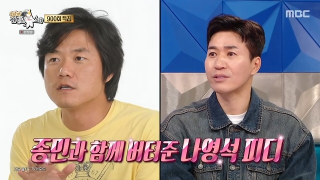 MBC‘라디오스타’캡처MBC‘라디오스타’캡처MBC‘라디오스타’캡처[뉴스엔서유나기자]코요태김종민이'1박2일'을18년동안하며PD나영석,방송인강호동에게받은도움을전했다.2월5일방송된MBC예능'라디오스타'(이하'라스')900회에는김종민,문세윤,박나래,코드쿤스트가게스트로출연했다.2007년부터'1박2일'에출연한김종민은알고보면20년차일요일의남자였다.'여걸6'부터시작해'준비됐어요'를이어'1박2일'원년멤버로들어갔다고.김종민은"군대체복무2년을빼고'1박2일'만18년째야외예능을하고있다"고밝혔다.김종민은'1박2일'에서살아남은사람은누가있냐고묻자"사실다바뀌었다.멤버분들다바뀌었고작가,PD님도많이바뀌셨다.국장님도다나가셨고사장님도바뀌시고.안바뀐분이저와카메라팀감독님,조명팀감독님,배차팀"이라며"오랜만에보면너무세월이흘러간게느껴지더라.머리도하야시고20년이되어가는세월을직감한다"고말했다.김종민은18년을버텨낸비결을묻자"제작진과선을잘지켜서아닌가싶다"며"예전시즌2때(김)승우형이갑자기나간다더라.PD님과너무친해서PD님이발령되니자기도안한다고,의리로.너무친하면한명이나가면너무서운한거다.같이나가는경향이있더라.전너무서운하지않게선을지키자했다"고답했다.김종민은원년멤버들이나갈때'관둬야겠다'고마음을가진적이있냐는질물에긍정했다.하지만"다음PD님이같이하자고하니까(했다)"고.김종민은또다른예능장수비결로는"제작진에게크게불만을얘기안하는것"을언급하며"(안나서고있으면)제가얘기하기전다른사람이얘기하더라"고덧붙여웃음을자아냈다.문세윤은"이형이절대먼저나서지않는데유일하게나설때가있다.식사할때다.식사할때다.'1박2일'의신구다.'웬만해선그들을막을수없다'에신구선생님이'나줘,나줘'하는에피소드가있잖나.(김종민이)막내가있든나이차이가있든상관없다.국을뜨고있으면손이들어와있다"면서,김종민이과거제작진과출연진몰래산짐승소리를내며매실을몰래주워먹다가본인에게딱걸렸던일화를폭로했다.물론미담도있었다.문세윤은"촬영가서짬뽕맛집이있으면가는데제작진까지들어오면20명,30명된다.종민형이보더니'내가내겠다'며2,3번을사더라.이건너무한것같아서내가'형반반하자'고했더니형이'괜찮다'고하더라.잊지말고보내줘야겠다해서회식비절반을송금했더니보내자마자'받았습니다'가뜨더라.이렇게해서반씩냈다.종민형이그냥흘리는사람이아니라방송에서'박수는내가받았지만세윤이가반을줬다'고말한거다.미담에미친딘딘이'그거내면미담이에요?'라고하면서들어와1/3이됐다.부담이줄었다"고전했다.김종민은'1박2일'하면서겪은인생최대고민으로소집해제직후를언급했다.2년동안방송복귀만을꿈꾸고나왔는데"생각처럼안풀렸다.나를다어색해했다.내가말하기뭐하더라.무슨말하면싸해졌다.너무끔찍했다"고.김종민은2년간싸한분위기가이어지며한때'1박2일'하차국민청원까지올라왔던것을떠올렸다.김종민은당시도움을준선배는없었냐는말에"도움이두움으로들리지않았다.힘내라는말도,잘해라는말도,파이팅도아닌거다.너무외로웠다.도움을주려하고(실제로)도움도주셨는데저에겐크게도움이되지않더라.'하차를해야되나'했는데그때딱하나생각한게하차하면인생이끝날것같았다.'누가자르더라도그냥있자'고버티다가몇년지나니조금나아졌다"고밝혔다.김종민은"KBS에서오래기다렸네"라는김구라의감탄에"위에서는하차시키자고했는데(나)영석형이버틴걸로저는안다"고밝혔다.또슬럼프를극복한계기에대해"형들이나가며멤버가합류하며바뀌더라"고전했다.김종민은"시즌3때사실하차통보를받았었다.전마음을정리했는데다른사람이그만두니또하자고오셨더라.고민하다가호동형을찾아갔다.호동형이본인일처럼고민해주시더니하는게나을것같다고말씀해주셔서다음날전화해서하겠다고했다"며"항상감사하고있다"고감사의마음을드러냈다.김종민은문세윤이하차스토리를처음들었다고하자"상처가됐었다.디테일하게는처음얘기한다"고털어놓으면서"그러다가방송을많이시작하게된게그때이후다.잘못했다간힘들어지겠구나해서"라고덧붙였다.뉴스엔서유나stranger77@기사제보및보도자료[email protected]ⓒ뉴스엔.무단전재&재배포금지Copyright©뉴스엔.무단전재및재배포금지.