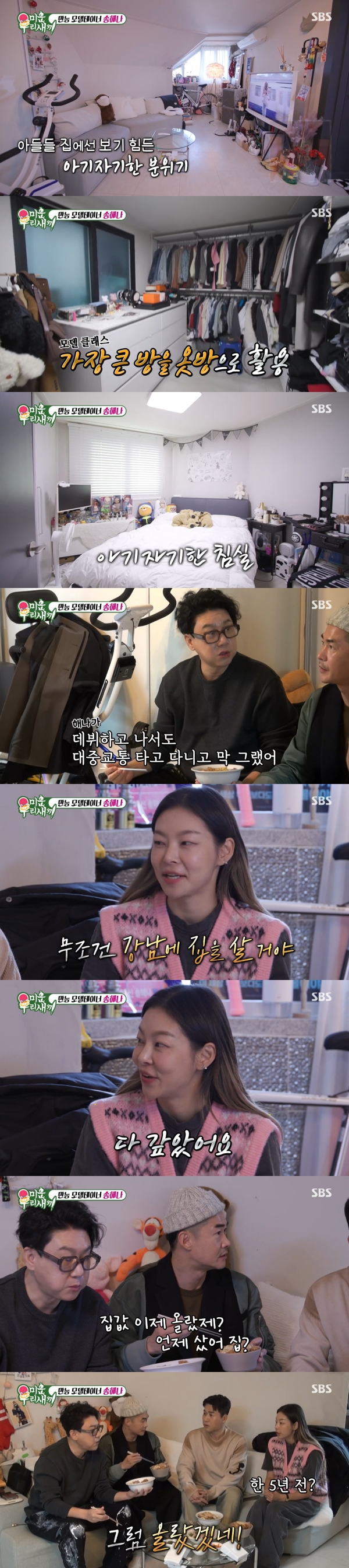 사진=SBS[스포츠투데이김태형기자]모델송해나가강남집을공개했다.9일방송된SBS'미운우리새끼'에는배정남,이상민,김종민이송해나의집을찾은모습이그려졌다.이날송해나는카드값정산에나섰다.12월명세서에가장많이나온것은음식배달으로,총지출액은44만6280원이었다.송해나는"이정도면괜찮은거같기도하다.하루에1만5000원이라고치면나쁘지않다"고말했다.또한술값은하루최대18만4000원,택시비로는한달동안총5만6700원을썼다.고정비를포함해12월총지출액은204만3684원이었다.송해나는"다음달에는100만원안쪽으로들어오게해야겠다"고다짐했다.이어송해나의집에배정남,이상민,김종민이도착했다.이들은송해나의집을보고"아기자기하다","잘꾸며놨다"고칭찬했다.송해나는"작지만혼자살기에는딱좋다"며"자가다"라고밝혔다.이어"제가20살부터일을했다.부모님용돈이그때부터끊겼다"며"차도30살넘어서샀다.제꿈은무조건강남에집을사는거였다"고말했다.송해나는"돈번것을다모았다.대출도꼈는데다갚았다"고밝혀눈길을끌었다.배정남이집값이올랐는지궁금해하자,송해나는"5년전집을샀는데주택이라많이는안오른다고하는데그래도뭐..."라고답했다.김종민과송해나의과거인연도눈길을끌었다.과거김종민은"송해나와썸탄적이있다"고발언한바있다.이에이상민은"예전에썸탔다는기사를본것같다"고했다.김종민은"아니그게아니다.농담한건데사귀었다고기사까지났다"고민망해했고,송해나는"그래서오빠유튜브가서오해풀었다.썸도아니다.이오빠결혼하는데그얘기를또꺼내가지고"라고말했다.송해나와썸을탔다는오해때문에여자친구와싸우기도했다는김종민은"오해가좀있었다.'왜그런얘기가있었냐'고했다.그당시에그랬다.오래만나지않았을때다"라고전했다.송해나는배정남덕분에보이스피싱을해결했다고밝혔다.그는"제가보이스피싱을당할뻔한적이있다.영어로이메일이왔다.무의식적으로확인을눌렀는데며칠있다가주변사람들에게돈빌려달라는문자가갔다.저장돼있던주소록이털렸다.엄마한테도가고아빠한테도가고큰엄마한테도갔다.그중에연락온사람이오빠였다"고말했다.배정남은"연락안한지오래됐는데돈이급하다고하길래너맞냐고물어봤다"며"돈빌릴사이가아닌데무슨일인가싶었다"고당시상황을떠올렸다.송해나는"정리가되는듯했는데오빠가톡말고문자로'정리잘됐냐'고해서'신고했다'고,'어떻게될지모르겠다'고보냈다.그런데동시에배정남한테'도용당한거어떡할거야?'라고톡이왔다.진짜배정남은문자를보내고가짜배정남이톡을보낸거다"라고말해모두를놀라게했다.[스포츠투데이김태형기자[email protected]]Copyright©스포츠투데이.무단전재및재배포금지.