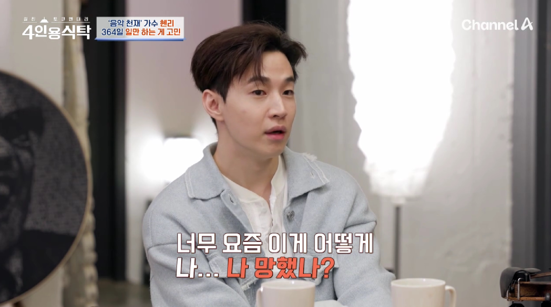 (엑스포츠뉴스윤현지기자)'4인용식탁'가수헨리가번아웃을호소했다.10일방송된채널A'절친토큐멘터리4인용식탁'(이하'4인용식탁')에는가수헨리가출연해배우김수로,방송인샘해밍턴,사유리를초대했다.이날헨리는"저는생각해보니(가족을)10년동안5번밖에못봤다"라고털어놨다.샘해밍턴은"호주에일년에한번왔다갔다하는데도갈때마다어머니가볼수록늙으신다.갈때마다'다음에다시만날수있을지모르겠다'라고하신다.노력해야한다.가족은죽으면후회한다"고이야기했고,사유리역시"연락을자주하라"고조언했다.헨리는매일아침할일을적는다면서"맨위에부모님한테전화하기있는데잘안된다"라고말했다.그러면서"얼마전에인생이180도로바뀌었다.원래큰꿈이있었다.글로벌가수로성공하고할리우드에가고회사도키우고싶었는데얼마전에태국여행을다녀왔다.그런데비행기에서제나이를깨달았다.이제늙었다라고생각이들더라"고이야기했다.이어"'5년지나면백패킹가능할까,10년지나면패러글라이딩이가능할까?'이런깨달음이있었다.원래는잠을안자면서364일일하는이유는나중을편하게살려고했었는데지금은'젊은시간에일만하고있구나'라고깨닫게됐다"고말했다.김수로는"진짜늙은사람에게물어보고싶었구나"라고너스레를떨자헨리는"심각하다.일에대한열정이없어진것같다"고토로했다.헨리는"쉬는날없이일하고,취미가없다.친구들도안만난다.'내인생이망했나?'싶을정도다"라고이야기했다.샘해밍턴은"밸런스가중요하다.한쪽으로너무기울여있다"라고말했고,김수로는"배우는것과일도시간투자이지만사교해보고다양하게즐기는것이정신적으로건강함이온다"라고조언했다.사진=채널A윤현지기자[email protected]©엑스포츠뉴스.무단전재및재배포금지.