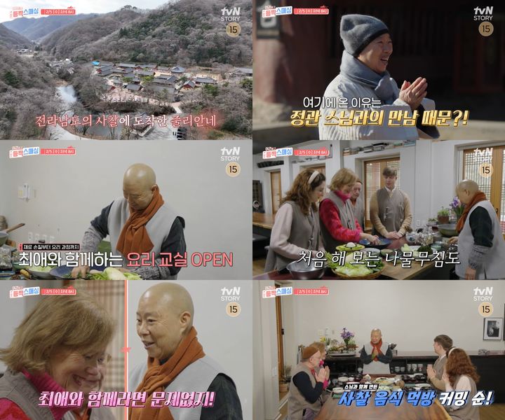 [서울=뉴시스]tvNSTORY'여권들고등짝스매싱'이5일오후8시방송된다.(사진=tvNSTORY'여권들고등짝스매싱'제공)[email protected]*재판매및DB금지[서울=뉴시스]서다희인턴기자=벨기에에서온줄리안부모와세계적스타정관스님이함께하는사찰요리교실이공개된다.5일오후8시방송되는tvNSTORY'여권들고등짝스매싱'에서는줄리안과글로벌가족들의한국여행기가계속된다.여행둘째날아침,줄리안과부모님은전남장성군에위치한백양사를방문한다.정관스님이출연한다큐프로그램을보고한국의사찰음식에푹빠진엄마를위해줄리안이특별한시간을준비한것.사찰음식의대가정관스님을직접만난엄마는한껏설레어하고,장난꾸러기아빠는의외의반전매력을지닌정관스님과환상의케미를보여줘웃음을안긴다.화기애애한분위기가묻어나는백양사암자에서본격적인사찰음식체험이시작된다.신선한식재료와각종장의향연속줄리안엄마는"정말꿈만같다"며감탄했다.서양에서는볼수없는스님의'손맛'에다시한번놀라움을금치못한다.엄마역시스님을따라인생처음손으로나물무치기에나선다.스님의시그니처메뉴인'표고버섯조청조림'등색다른사찰음식이하나하나완성될때마다탄성이터졌다는후문이다.스튜디오에서는정관스님을섭외한줄리안의인맥을놓고풍성한토크가펼쳐진다.줄리안부모님이정관스님과의만남을성사시킨아들을향해"정관스님과아는사이라니,넌슈퍼스타야"라며뿌듯함을드러낸바.래퍼딘딘은방송인김성주에게인맥을둘러싼에피소드를묻는다.김성주는초등학교6학년딸의최애인그룹'아이브'장원영의사인을받아준일화를밝혔다.방송인장영란과딘딘은"딸에게는아빠가영웅이다"고거들어김성주를으쓱하게한다.☞공감언론뉴시스[email protected]©뉴시스.무단전재및재배포금지.