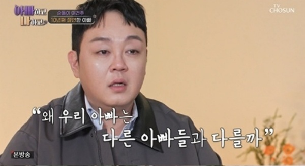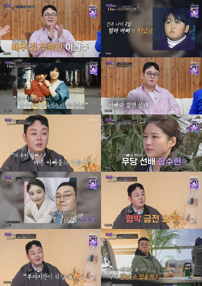 [OSEN=최이정기자]'순돌이'이건주가10년간절연한아빠에대한원망과한을쏟아내며오열했다.11일방송된TVCHOSUN'아빠하고나하고'에서는'배우겸무속인'이건주가출연해10년째아빠를안보고살고있는안타까운가족사를공개했다.또신내림을받고무속인의길을걷고있는두번째인생에대해털어놓으며시청자들의마음을울렸다.'아들대표'이건주,'아빠대표'여경래를비롯해전현무,이승연,수빈,임현식이함께했다.시즌2의첫방송이었던이날방송은전국시청률3.5%,분당최고시청률은4.6%(닐슨코리아,전국기준)를기록하며기분좋은출발을알렸다.2살때부모님이떠난뒤고모들의손에자랐다는이건주는"그때고모들의나이가스무살남짓이었다.그꽃다운시간을오롯이저를위해쓰셨다"라며눈시울을붉혔다.드라마'한지붕세가족'의순돌이역으로폭발적인인기를누릴수있었던것도모두매니저역할을자처한고모들덕분이라며고마움을표했다."큰이민가방에의상을싸서그무거운걸끌고한손으로는저를안고촬영장을다니셨다"라고당시를회상했다.누구보다애틋한이건주와고모들이었지만무속인이되는것을두고뜻이갈렸다.고모들의반대에도운명처럼무속의길로이끌린이건주는"무당이아니면죽을것같았다.신내림받기전에고모랑붙잡고많이울었다"라고밝혔다.이건주는순돌이로활동하던어린시절부터최근까지아빠로부터금전요구와협박을받아왔고,이로인해10년째절연한상태라는사실을고백했다."건주가돈잘버는데너희만잘먹고잘살면안되지않냐"라는아빠의요구에대해이건주는"저는그렇게잘먹고잘산적이없다"라며분노했다.그러면서"내가아버지의존재를부정하면끝날줄알았다.도대체부자지간이뭐길래나를이렇게까지속상하게하실까"라며한을토해냈다.이날방송에서는이건주가홀로생일을맞이한가운데,신(神)동생인'신들린연애'함수현이손수미역국을끓여미니생일상을차려주어감동을자아냈다.이건주는함수현을포함한신(神)가족에대해"같이있으면마음이편하다.고민얘기도많이한다"라며특별한애정을나타냈다.또자신의무속의길로이끌어준신(神)아버지에대한깊은신뢰를드러내며"신아버지가친아버지였다면되게멋있었을것같다"라고말했다.한편방송말미,이건주가아빠를만나기위해기다리고있는장면이포착되며부자상봉에대한시청자들의궁금증을증폭시켰다."솔직히만나고싶지않았다.한참을고민했다"라며심경을밝힌가운데,과연이건주는10년만에아빠를다시만날수있을지귀추가주목된다.'아빠하고나하고'는매주화요일오후10시에방송된다./[email protected][사진]'아빠하고나하고'Copyright©OSEN.무단전재및재배포금지.