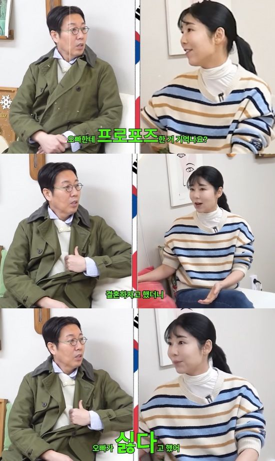 [서울=뉴시스]김영철(왼쪽),사유리.(사진=유튜브채널'김영철오리지널'캡처)[email protected]*재판매및DB금지[서울=뉴시스]전재경기자=일본출신방송인사유리가입담을뽐냈다.유튜브채널'김영철오리지널'이최근공개한영상에는사유리가게스트로출연한모습이담겼다.영상에서사유리는김영철에게"오빠한테프러포즈한거기억나요?"라고물었다."압구정,청담동에서이틀연속으로만났잖아,그래서내가세번째만나면우리운명이니까결혼하자고했더니오빠가'싫다'고했었다"고밝혔다.김영철은"내가그랬나?"라며골똘히생각했다.사유리는"내남자친구차에타고있었는데오빠가지나갔다"고설명했다.김영철은"그때남자친구있을때였지?이상민?"이라고물었다.사유리는"이상민오빠말고"라고부인했다.김영철이"이상민이랑어떤관계였냐?"고묻자사유리는"이상민은X다X남편이다"라고말했다.사유리와이상민은2014년JTBC예능물'님과함께'에가상부부로출연한바있다.사유리는김영철에게"근데오빠는왜항상압구정거리에돌아다녀?항상힘없이지나간다"라고지적했다.김영철은억울한표정을지으며"나청담동에살고있는주민이다"라고목소리를높였다.그러자사유리는"청담동얼굴이아닌데"라고받아쳐웃음을안겼다.한편사유리는일본에서서양인남성의정자를기증받아2020년11월아들후지타젠을출산했다.☞공감언론뉴시스[email protected]©뉴시스.무단전재및재배포금지.